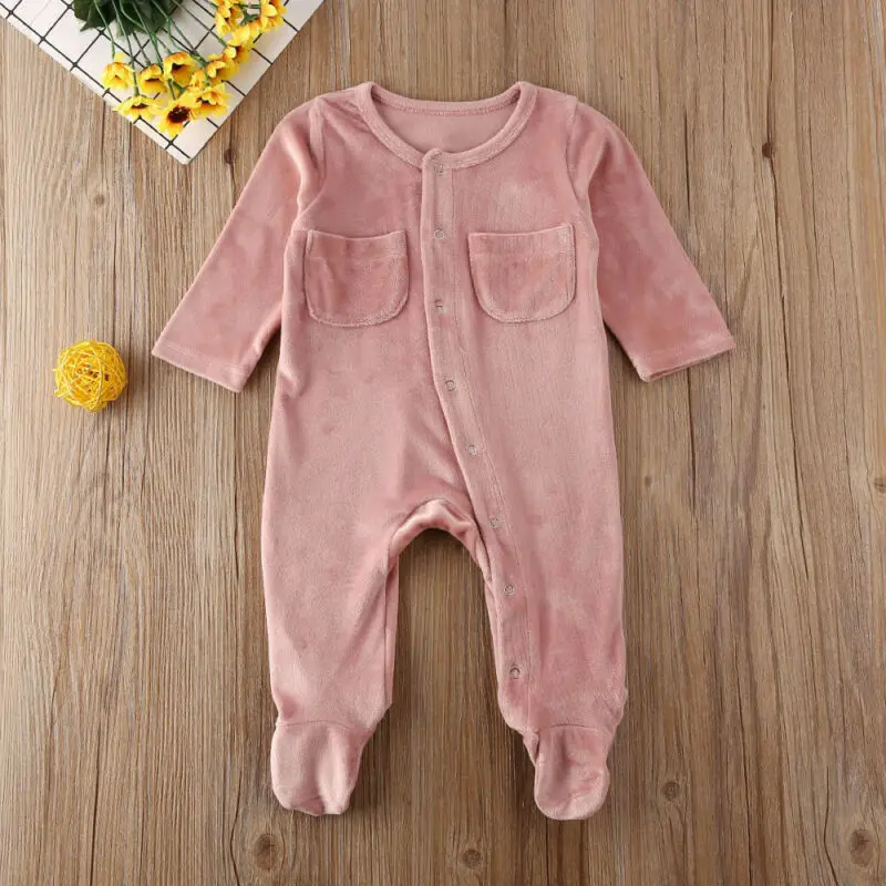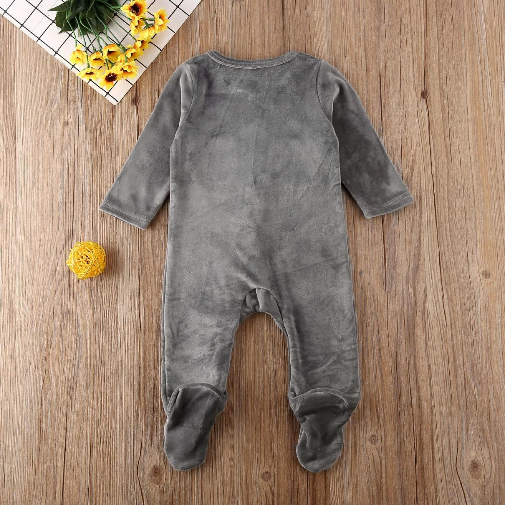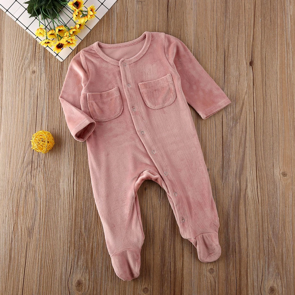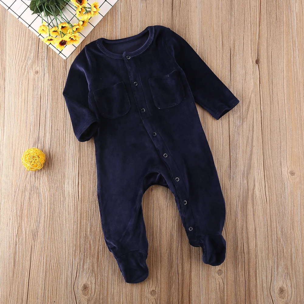 Однотонный бархатный комбинезон с длинным рукавом для новорожденных девочек и мальчиков, однобортный комбинезон, наряды