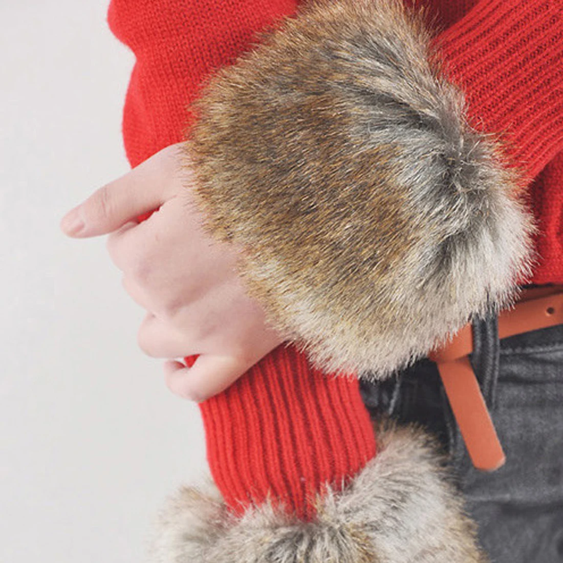 Теплые женские нарукавники из искусственного меха, мягкие, эластичные, серые, белые