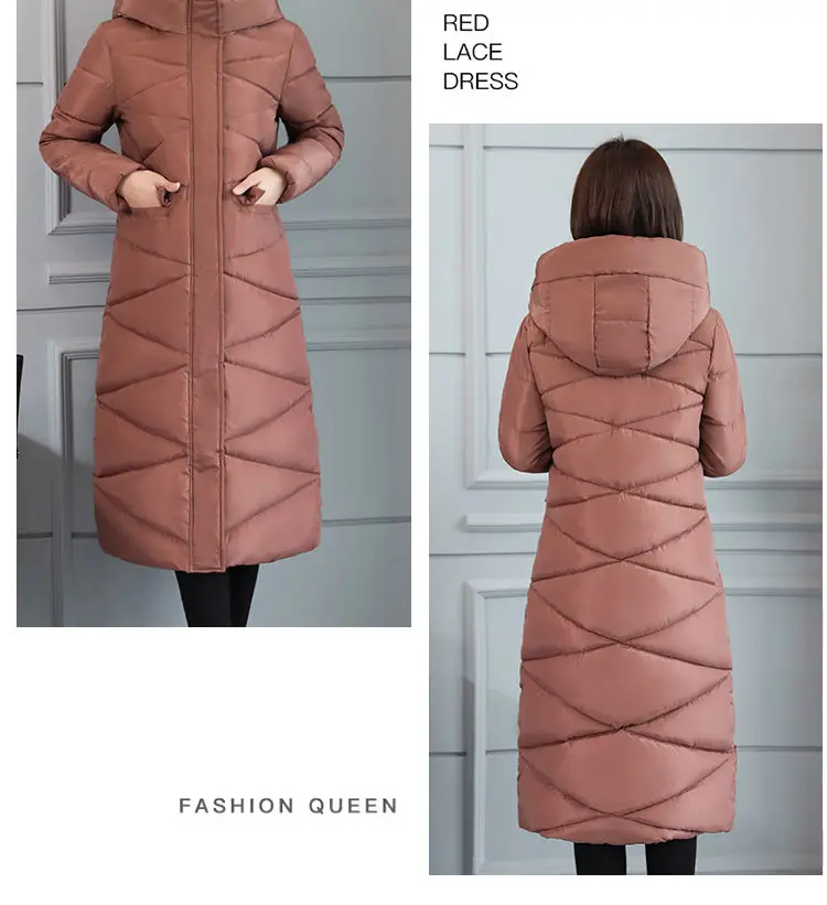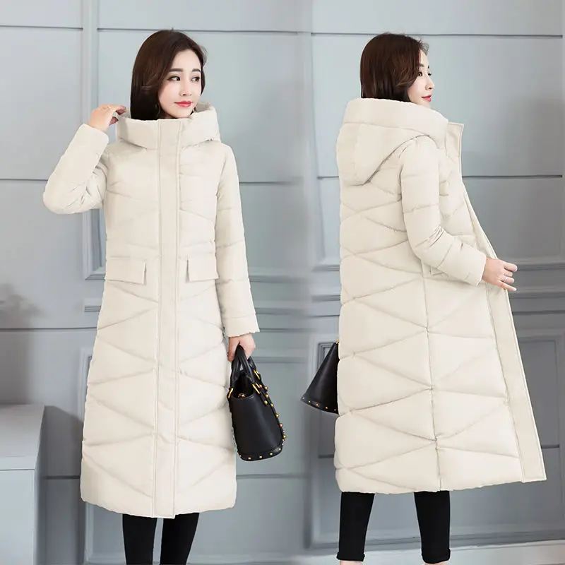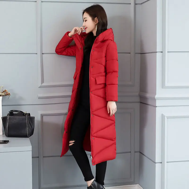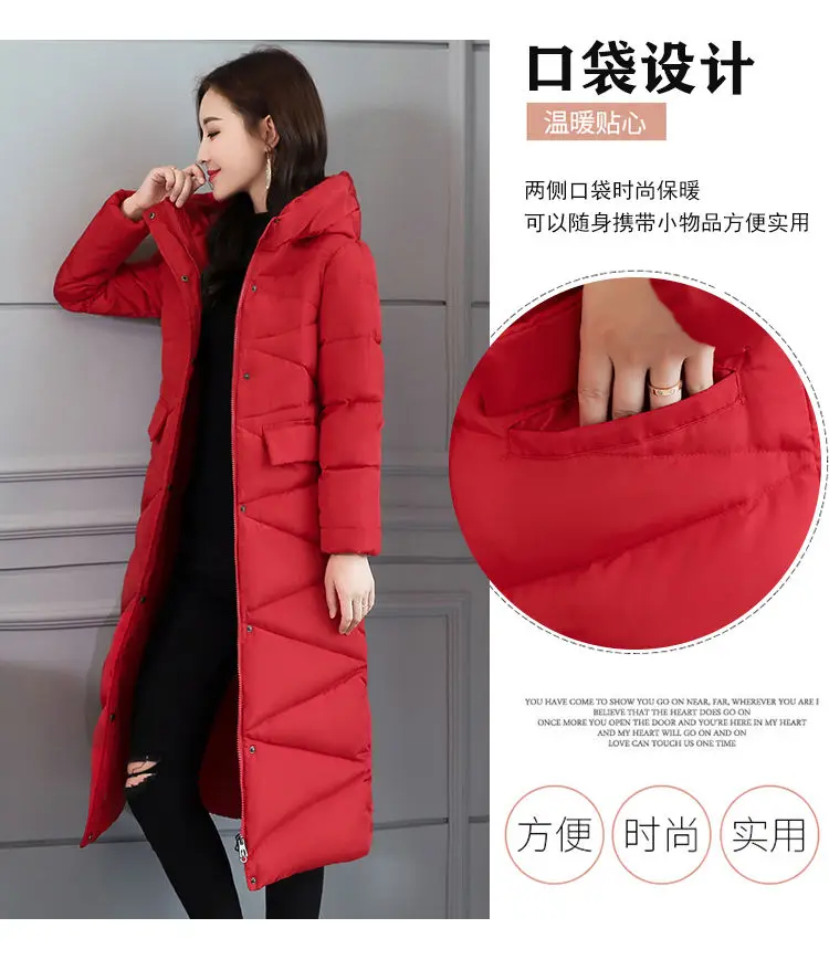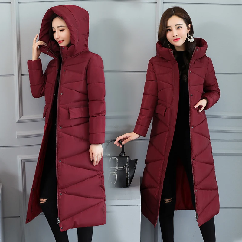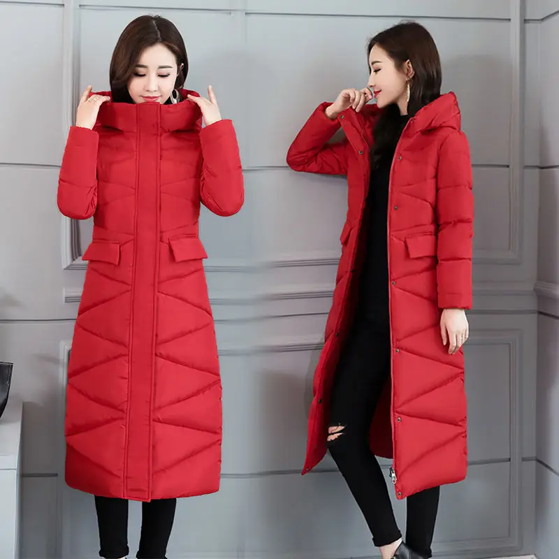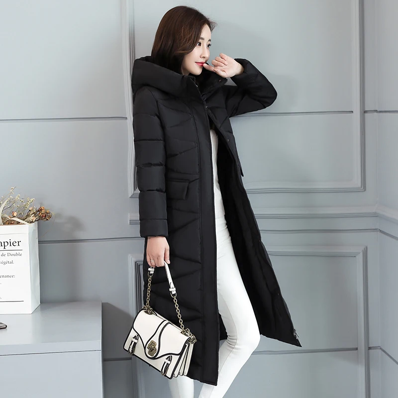Женская Стеганая куртка длиной до колен, приталенная куртка с капюшоном в Корейском стиле, хлопковая куртка, студенческое пальто размера, зимняя одежда