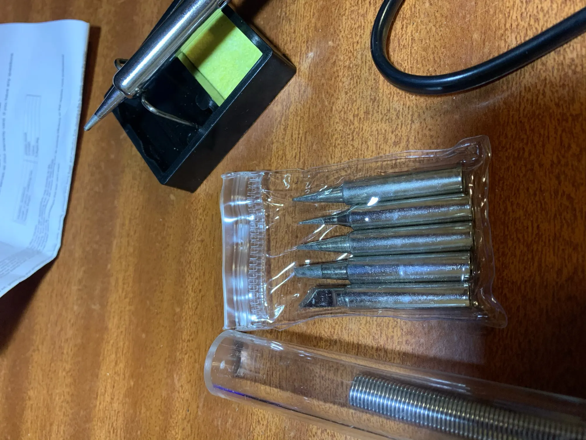 Пришло быстро, все как в описании. Паяльник греется быстро, но в работе еще не пробывал.