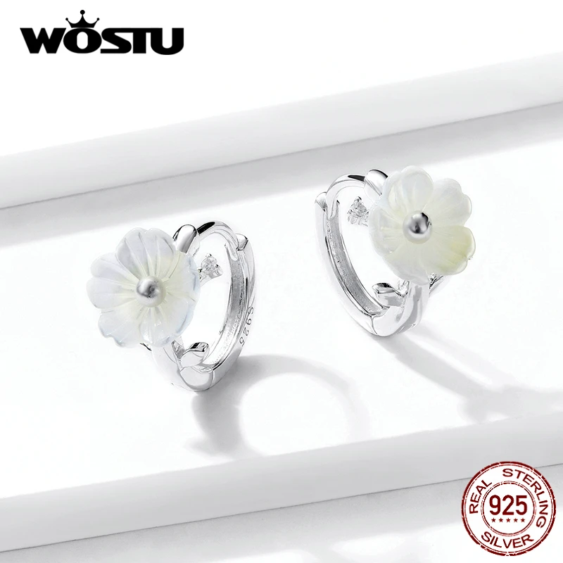 Женские серьги с цветком WOSTU, из 100% настоящего серебра 925 пробы, с белыми лепестками, ювелирные изделия, CTE321