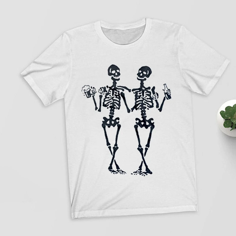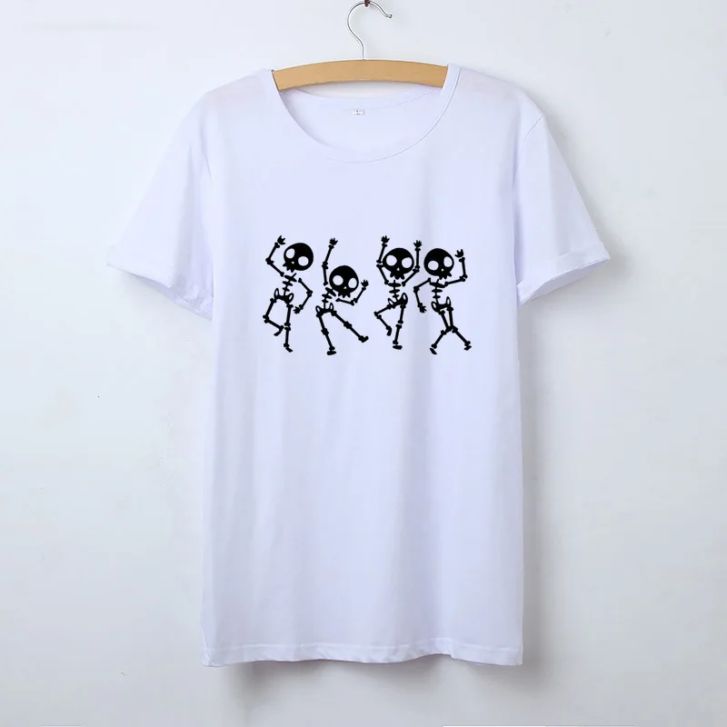 Модные женские футболки в стиле панк, летняя футболка с рисунком черепа, скелета, пинтинга, забавная белая футболка в стиле Харадзюку, футболки с графическим рисунком в стиле панк-рок