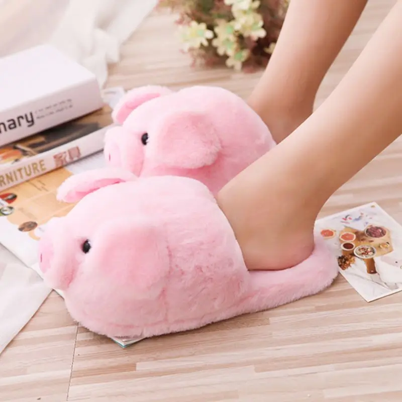Женские зимние плюшевые тапочки 26 см с милыми розовыми свиньими животными, мультяшными животными, нескользящая пушистая обувь, подходит для ног, размер 36-39