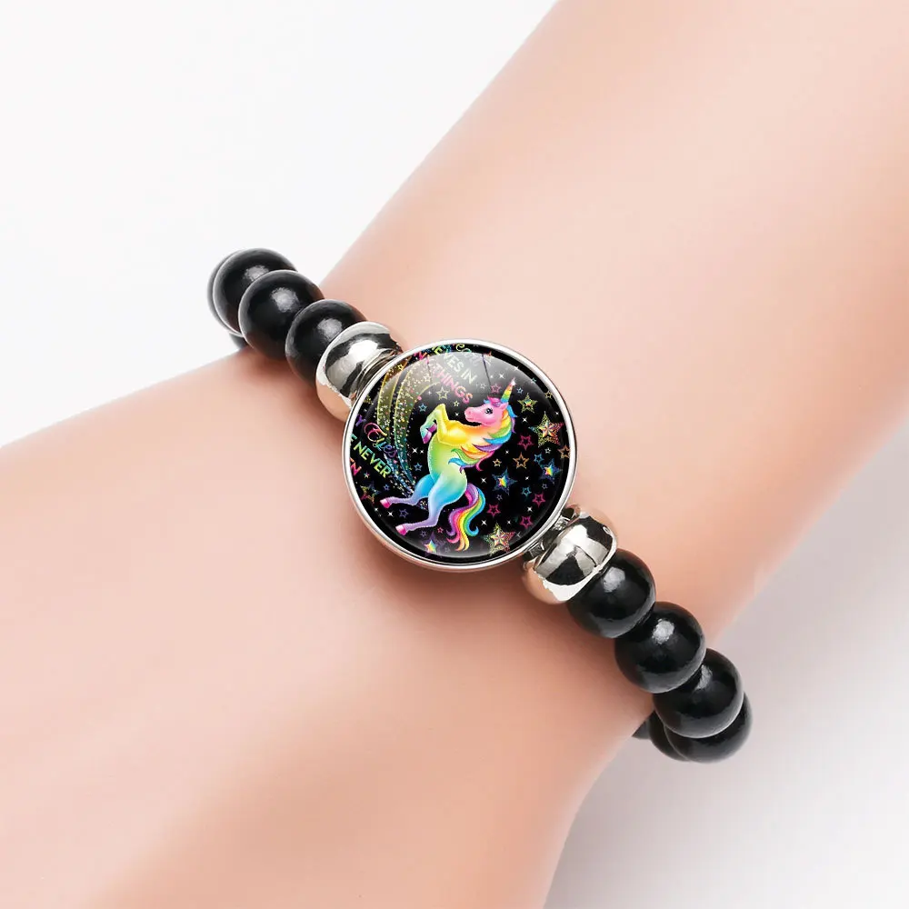 Браслеты с бусинами в виде единорога, 18 мм, застежка-держатель пуговиц, кабошон, фламинго, модные браслеты для девочек, женщин, мальчиков, ювелирные изделия, подарок