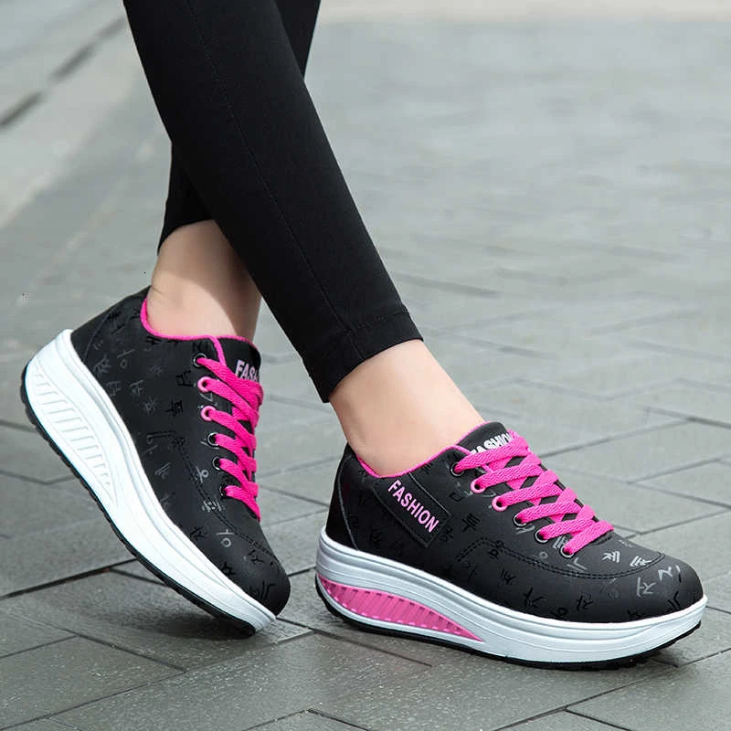 Водонепроницаемые тонизирующие кроссовки для женщин, увеличивающие рост, на танкетке, обувь для фитнеса, на платформе со шнуровкой, нескользящая спортивная обувь для прыжков