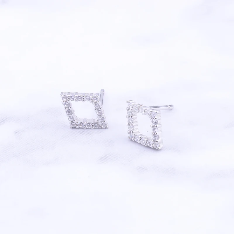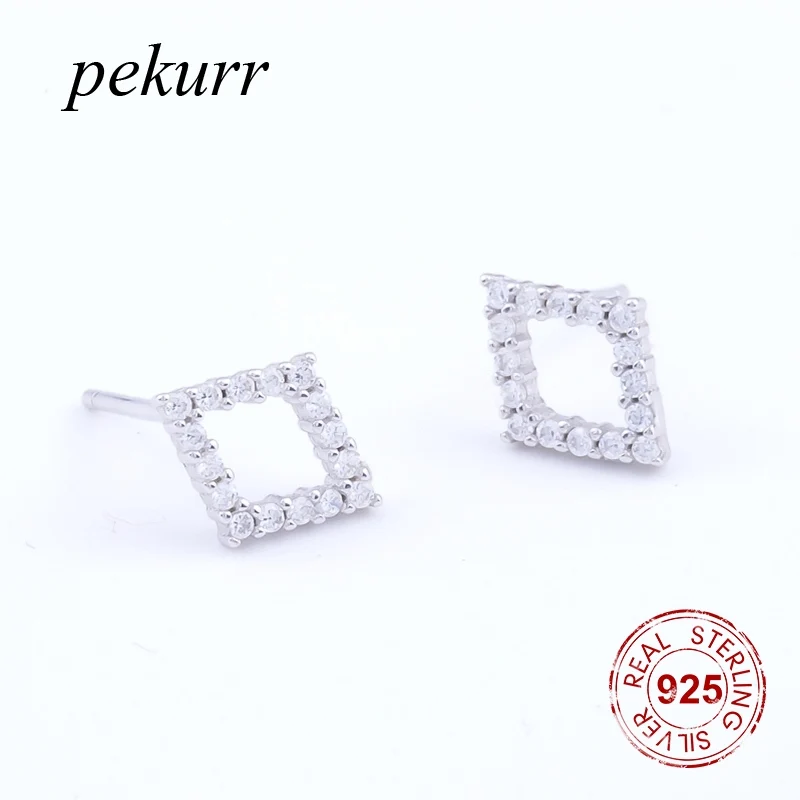 Женские серьги-пусеты Pekurr, из стерлингового серебра 925 пробы с 3D кубическим цирконием, в форме квадрата, геометрической формы, ювелирные изделия для девочек, подарки
