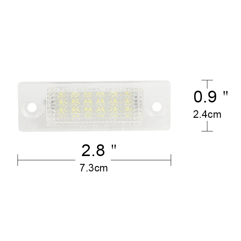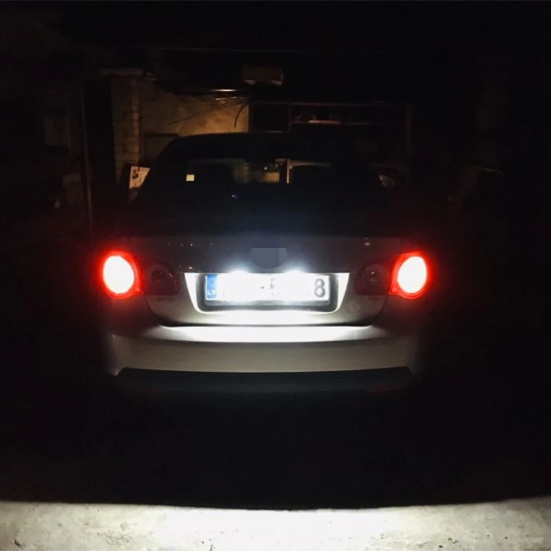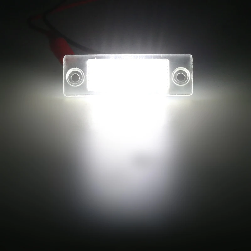 Есть одна пара безошибочных светодиодных ламп для номерного знака высокой мощностиКаждый светильник номерного знака оснащен 18 светодисветодиодный дами 3528 SMD, излучающими сверхъярсветильник.Прямая установка, без проводки или модификации, просто подключи и работай.Нет ошибок на всех моделях приложений.
