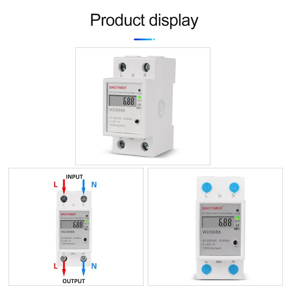 Цифровой Электрический измеритель расхода кВтч на din-рейку, умный тестер энергии, мощность WiFi, ватт, дистанционный переключатель, тестер, контроль, монитор, 110 В, 220 В, AC