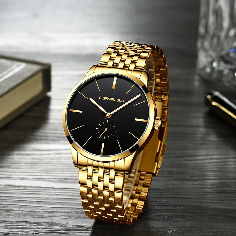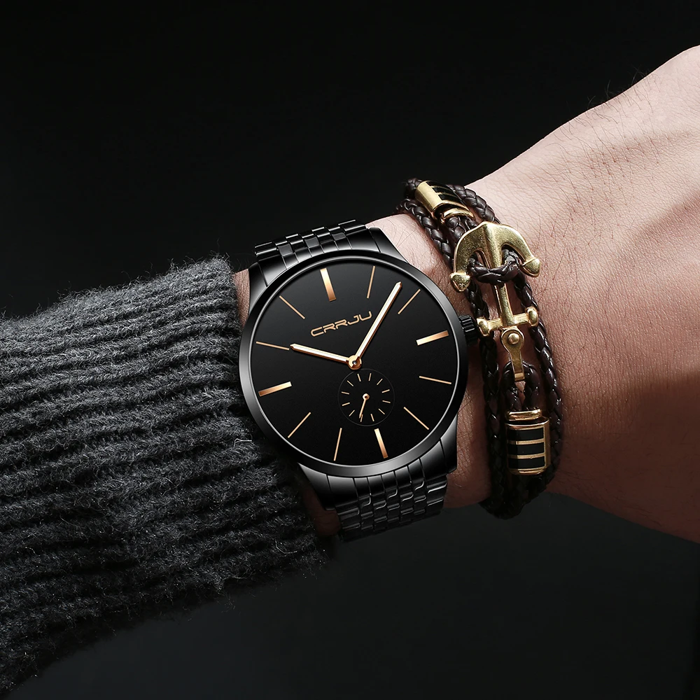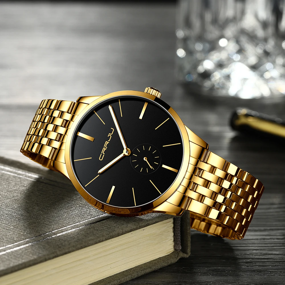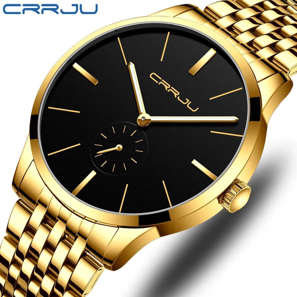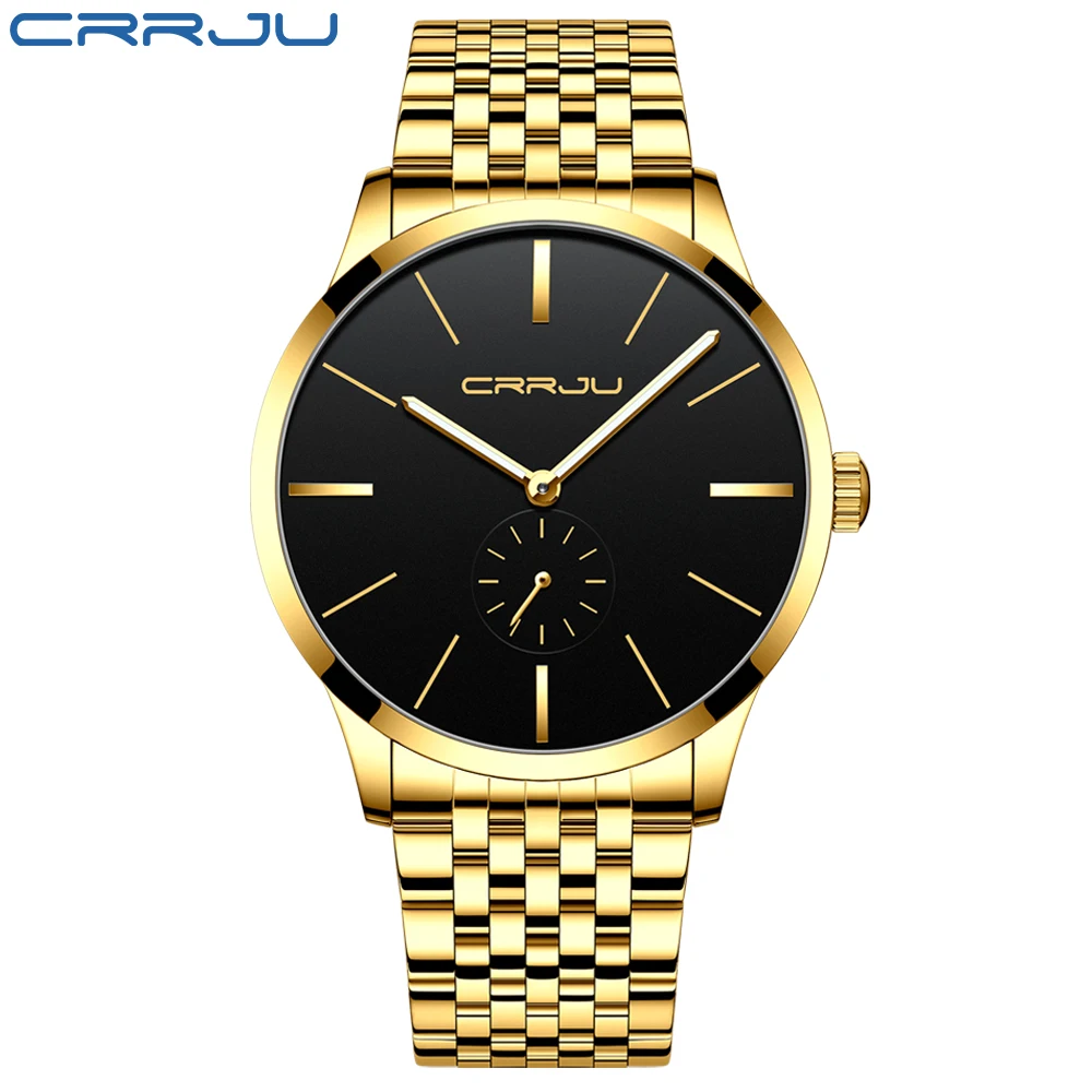 Часы CRRJU мужские наручные, роскошные брендовые классические модные водонепроницаемые, в деловом стиле, из нержавеющей стали