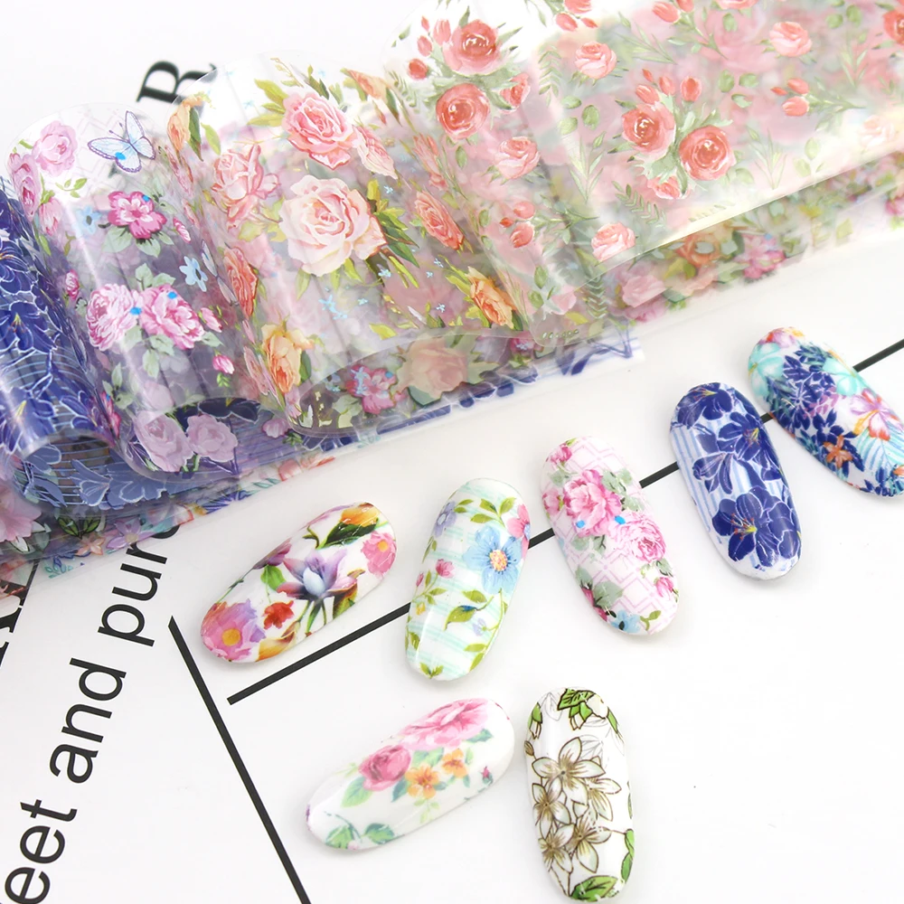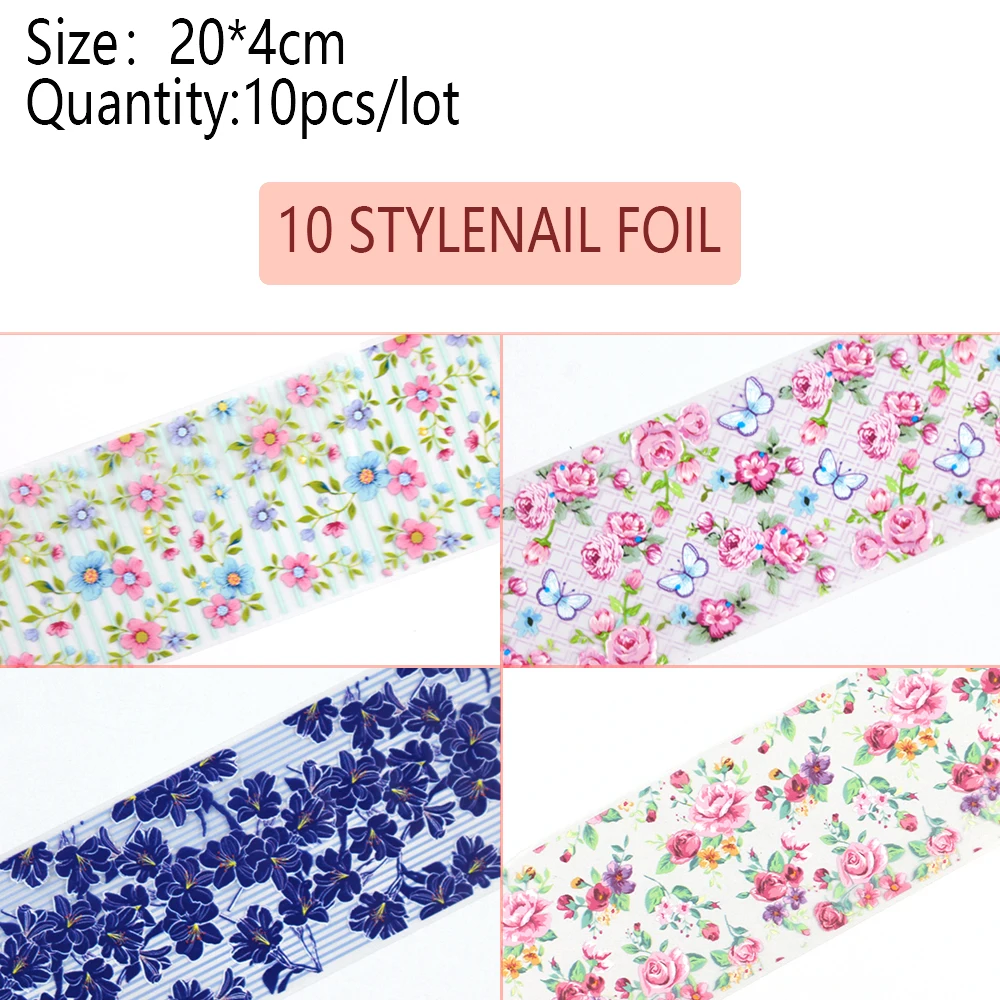 Переводные наклейки для ногтей, смешанные цветы, звезды, 10 шт.компл.