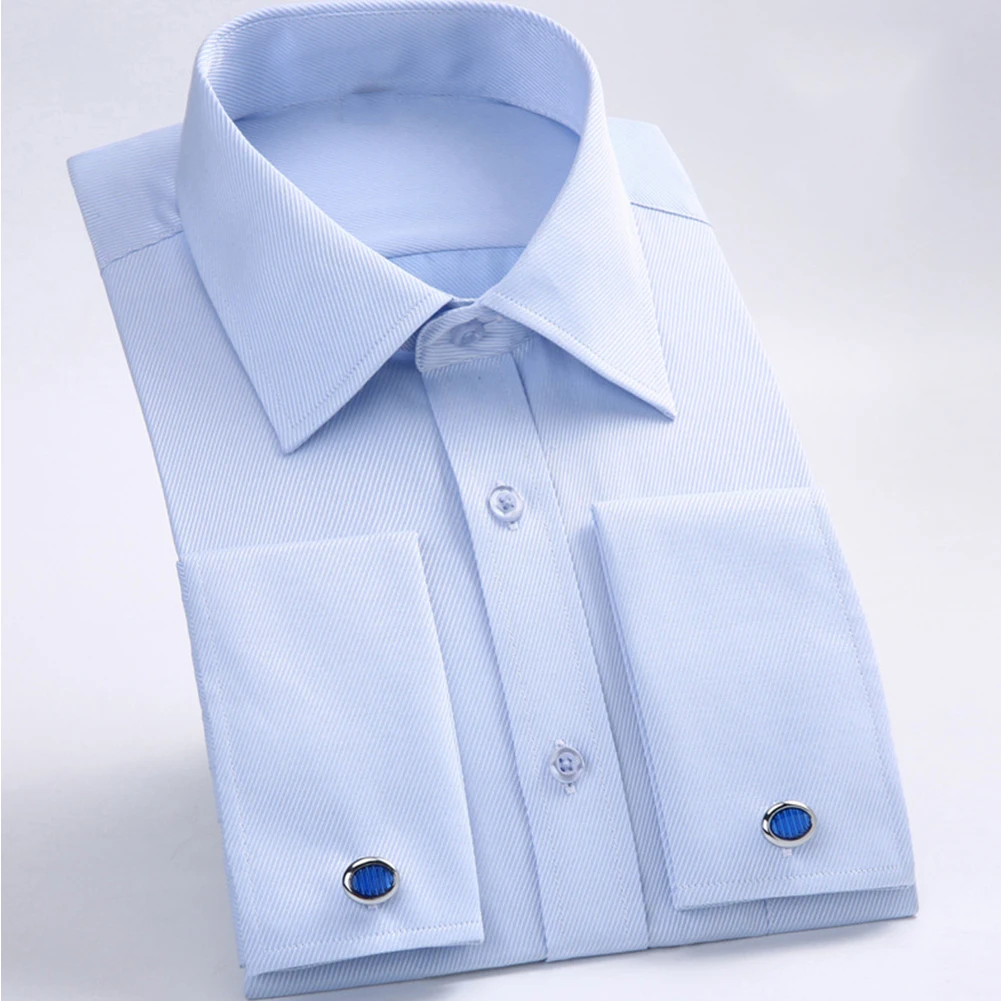 Рубашка мужская с французскими запонками, повседневная дизайнерская Стильная сорочка с длинным рукавом и воротником, французские манжеты