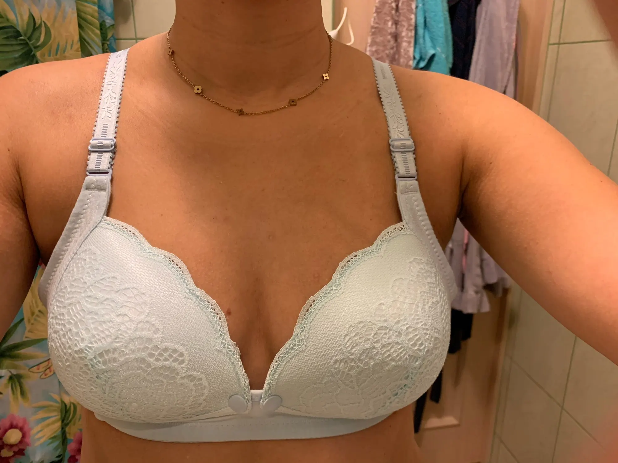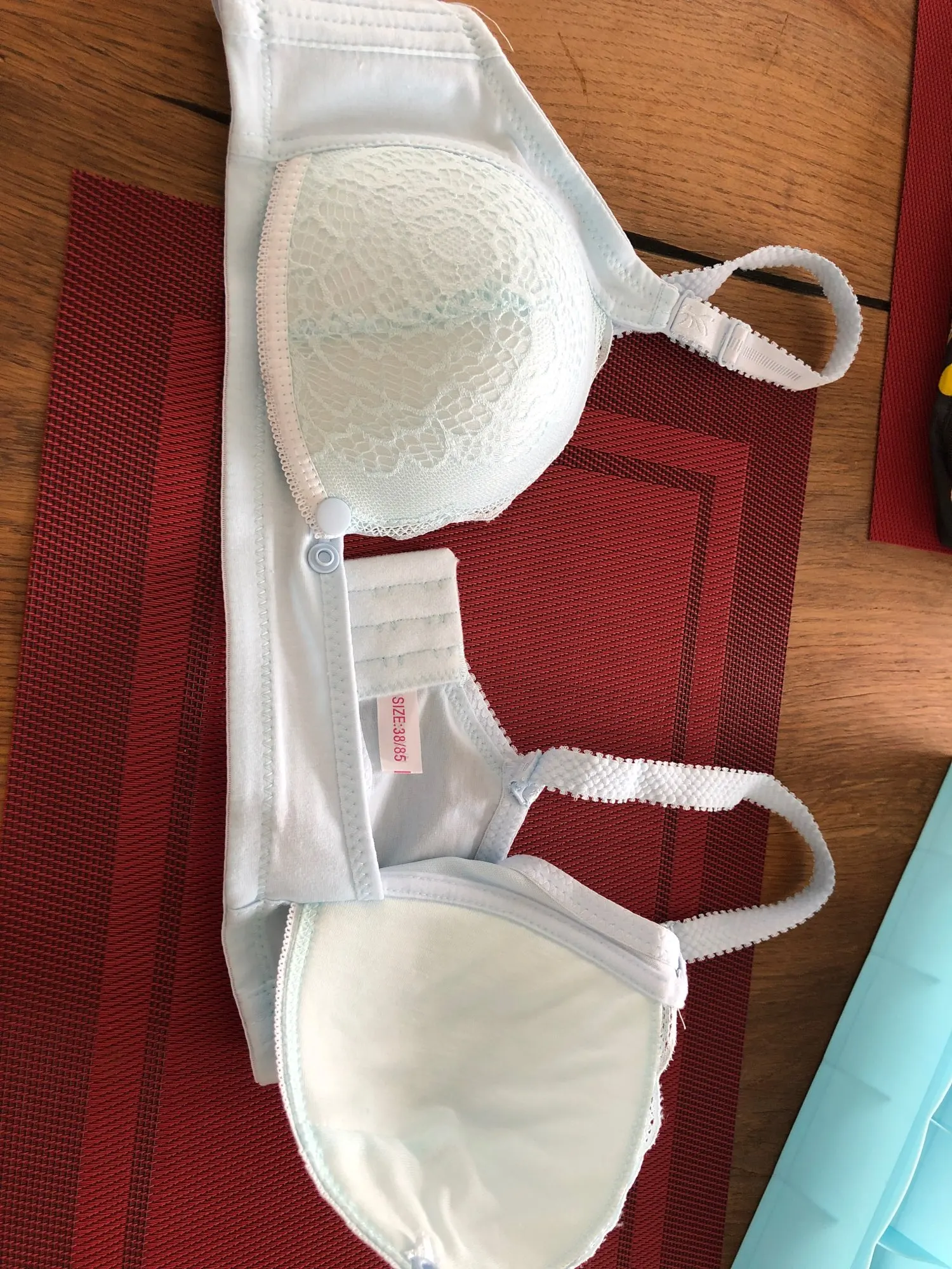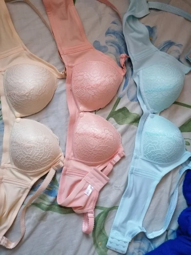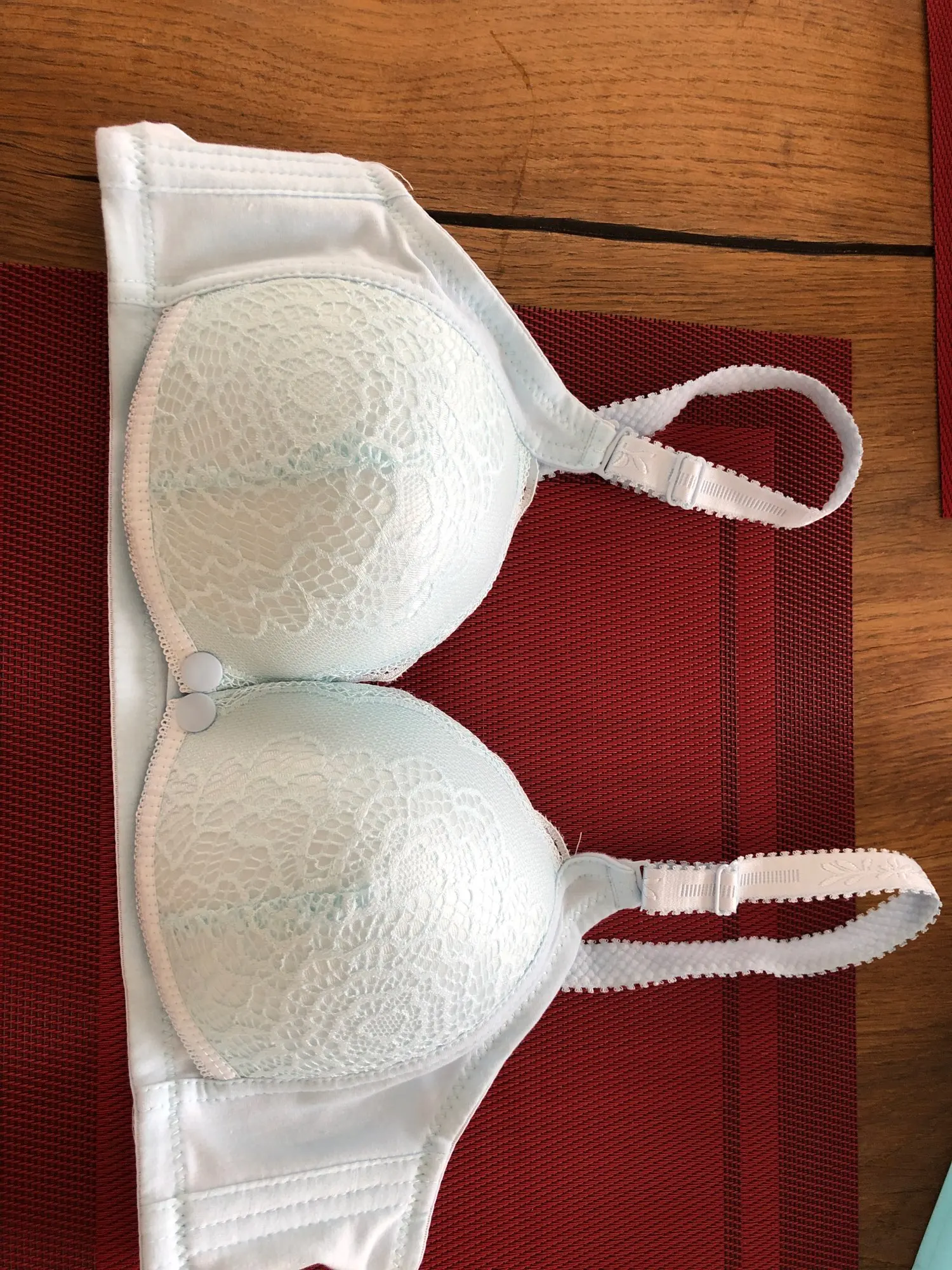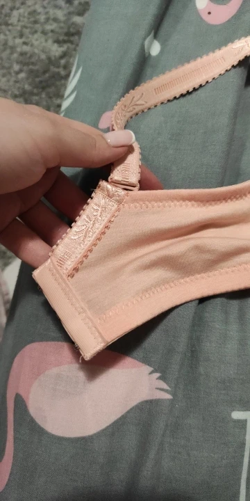 Ожиданий не обманул, классный, нежный, аккуратный, буквально одна нитка торчит. Кнопки тугие, пользоваться ими не буду, как ни разу не пользовалась никакими отстежками бюстгальтера во время кормления, удобнее просто отвернуть саму чашку, что б не возиться и не шуметь возле полуспящего или спящего ребенка. Мне кажется, для первых месяцев ГВ не пойдет, если грудь течет и нужны прокладки, будут торчать, они обычно не маленькие, а для зрелой лактации когда молоко прибывает только во время кормления пойдет очень хорошо. Сейчас у меня 9й месяц, объем и грудь увеличились, на последнюю застегивала, нормально. А так даже во время кормления обычный мой 75А, тоже должно подойти, просто на первый буду застёгивать и шлейки подтяну. До Москвы 3 недели, отслеживалась посылка