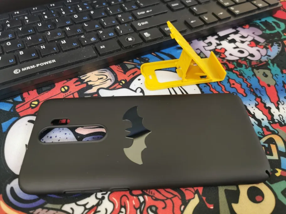 Обычный чехол, просто с мышкой которая магнитися к держателю. Держит телефон нормально, не отваливается от держателя. Note 8 pro. А вот мышь по краям отклеивается. Пластик на ощупь норм, софт тач обычный. Сам чехол почти не увеличивает размеры телефона. В целом иллюзий не было, что хотел то и получил. Пришло быстро. Продавец положил подставку под телефон, мелочь, а приятно, сам второй год не мог себе заказать ее
