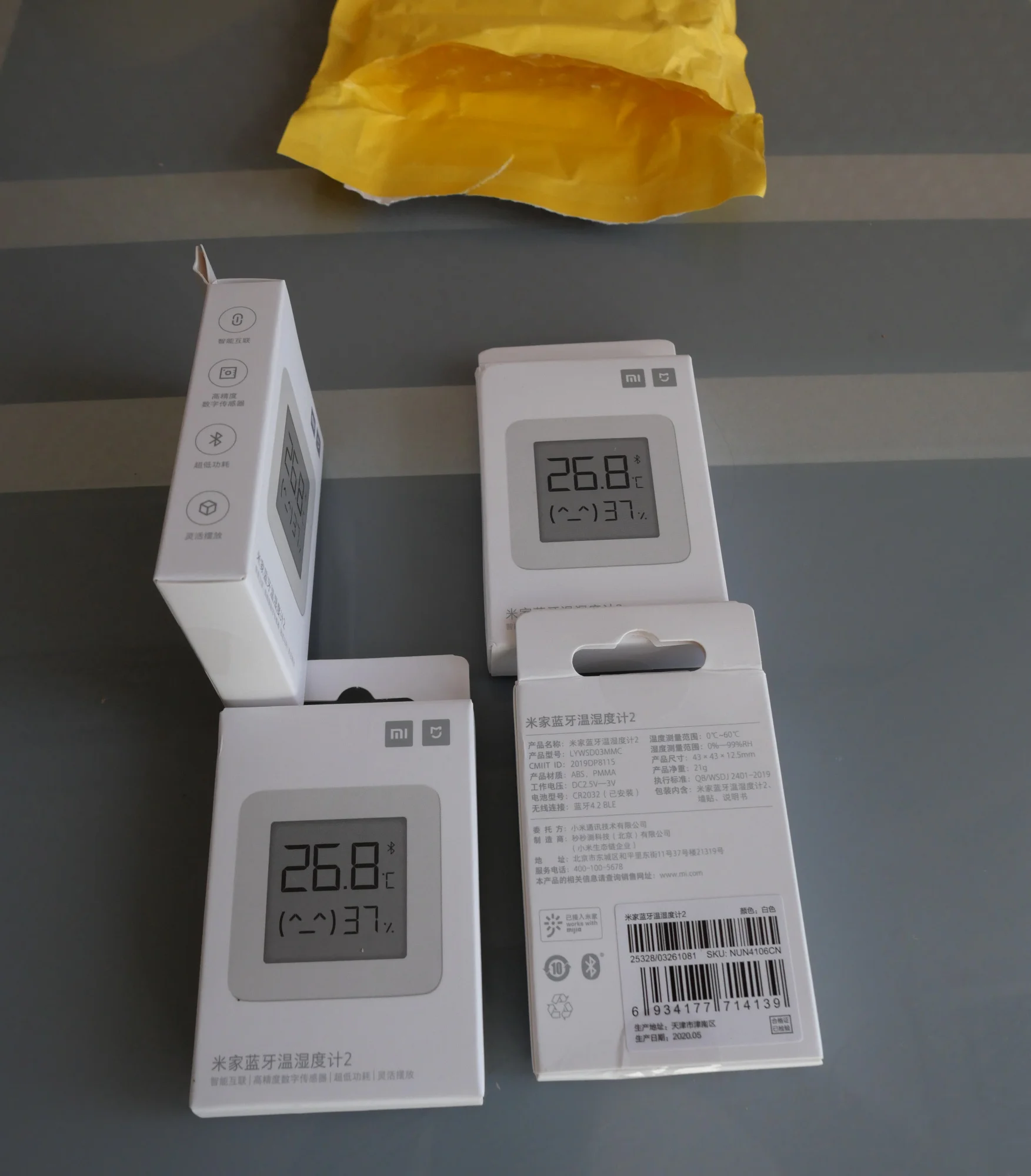 Доставили за 20 дней до Алтая. Нормально. Упаковано не сказать, что очень хорошо. На конверте потёртости до дыр, но внутри ещё пупырка. Но внутри все целое, коробочки без видимых повреждений. Сами датчики очень маленькие, примерно как спичечный коробок. С подключением к Mi Home проблем не было, главное разрешение на местоположение дать.