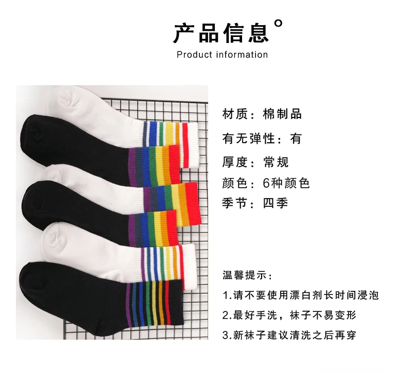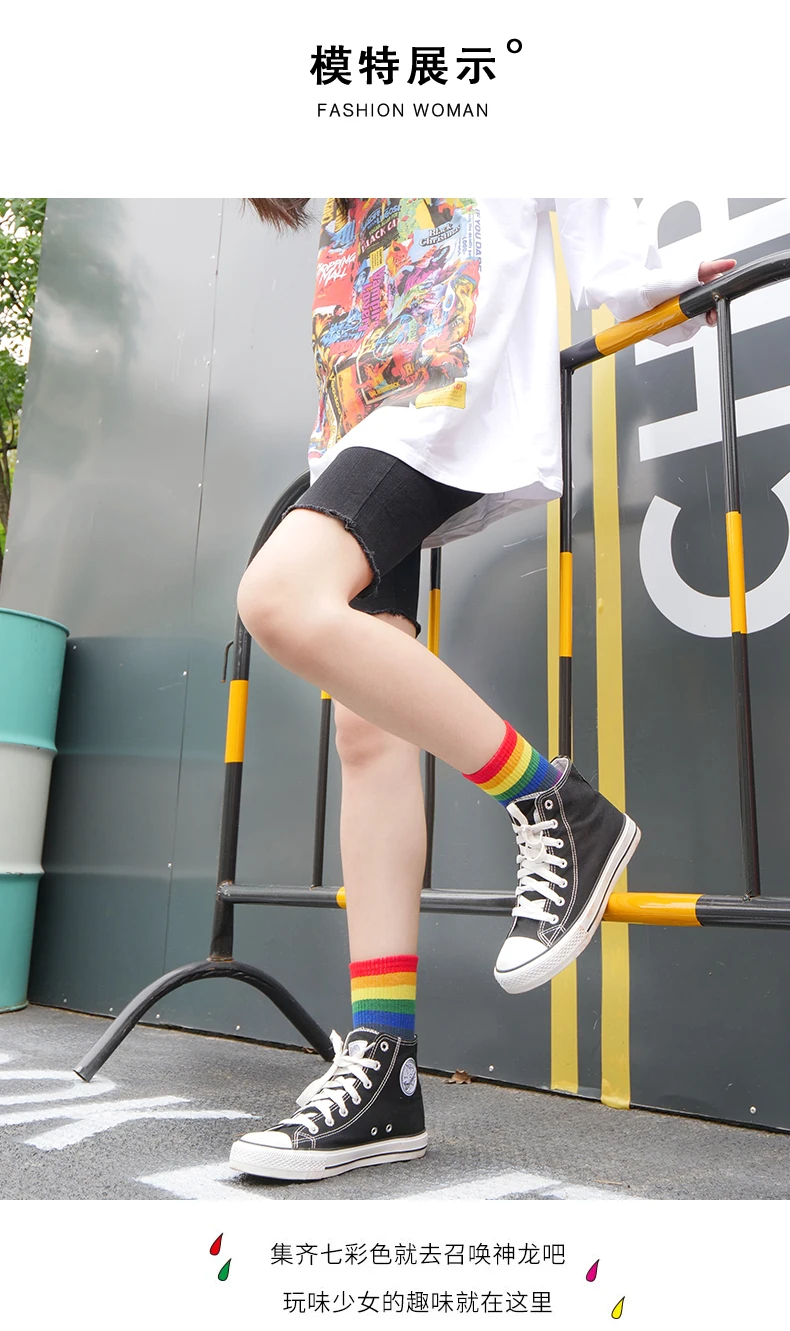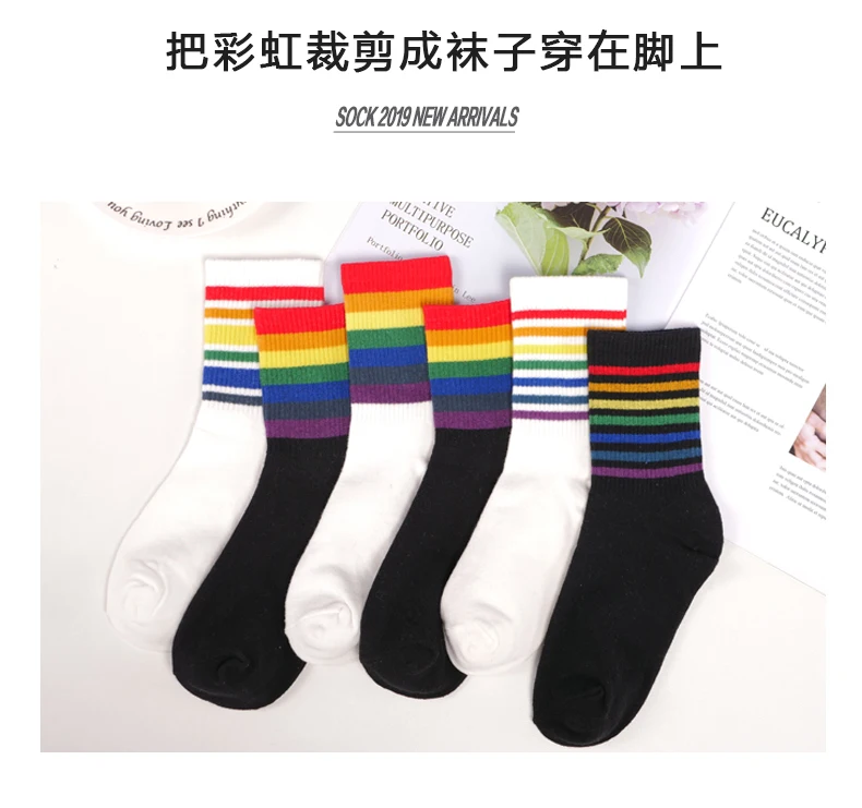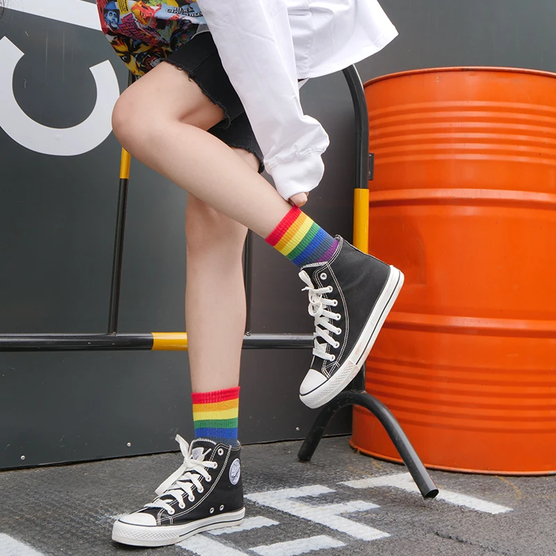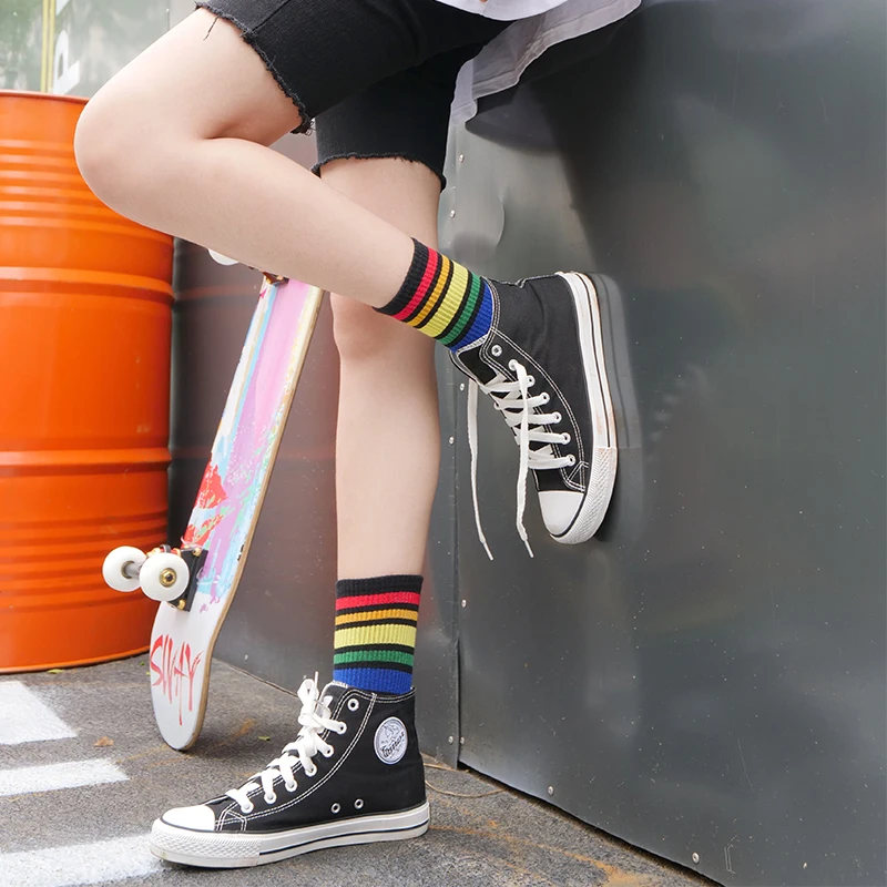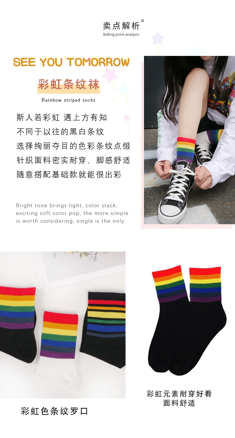 Зимние Модные женские носки в радужную полоску в Корейском стиле Harajuku