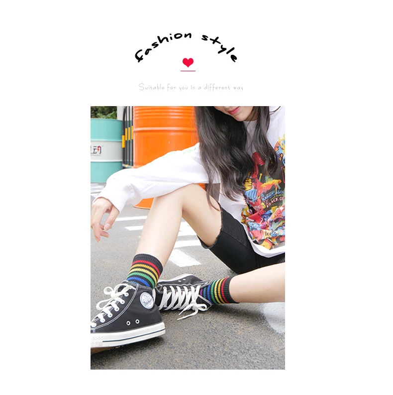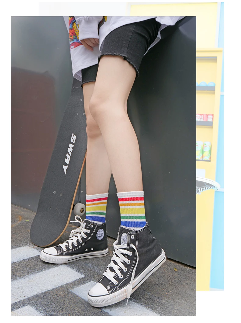 Модные женские полосатые радужные носки в Корейском стиле Харадзюку...