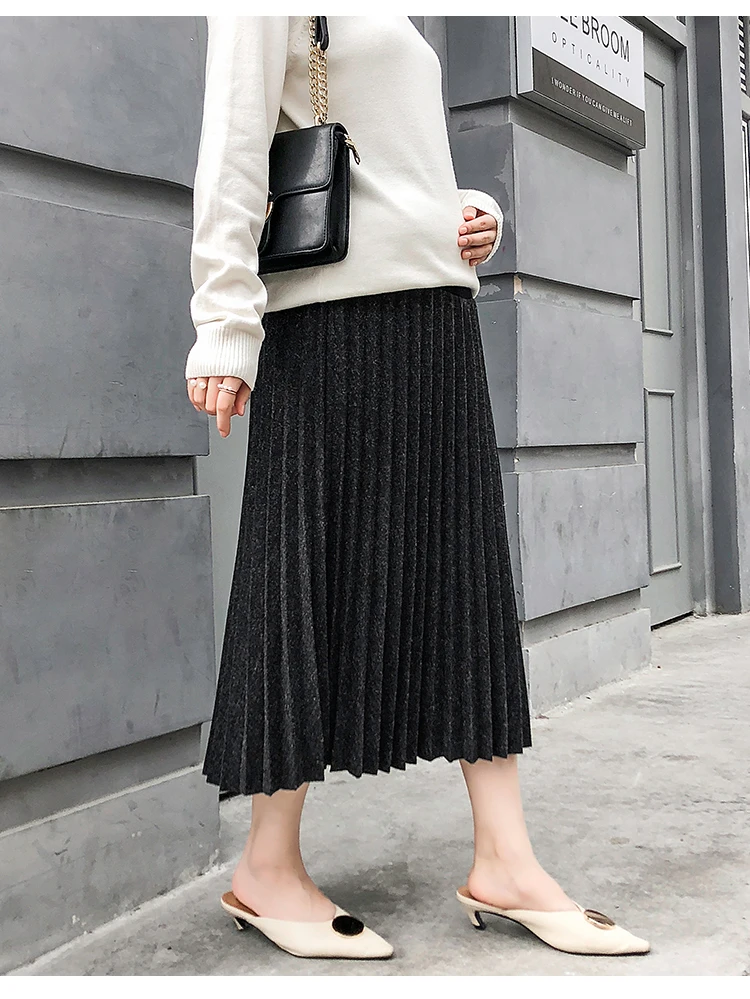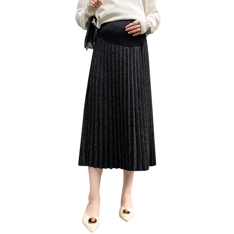 Плиссированная юбка с высокой талией, Одежда для беременных женщин, осенне-зимняя юбка, нижние брюшные юбки, Одежда для беременных
