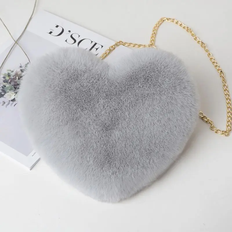 Женский кошелек через плечо из искусственного меха в форме сердца, кошелек с цепочкой, сумка через плечо