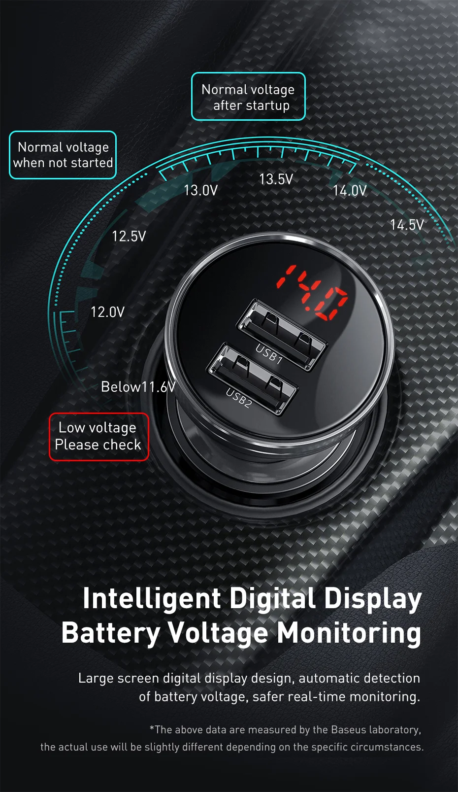 Зарядное устройство Baseus автомобильное с двумя USB-портами, 24 Вт
