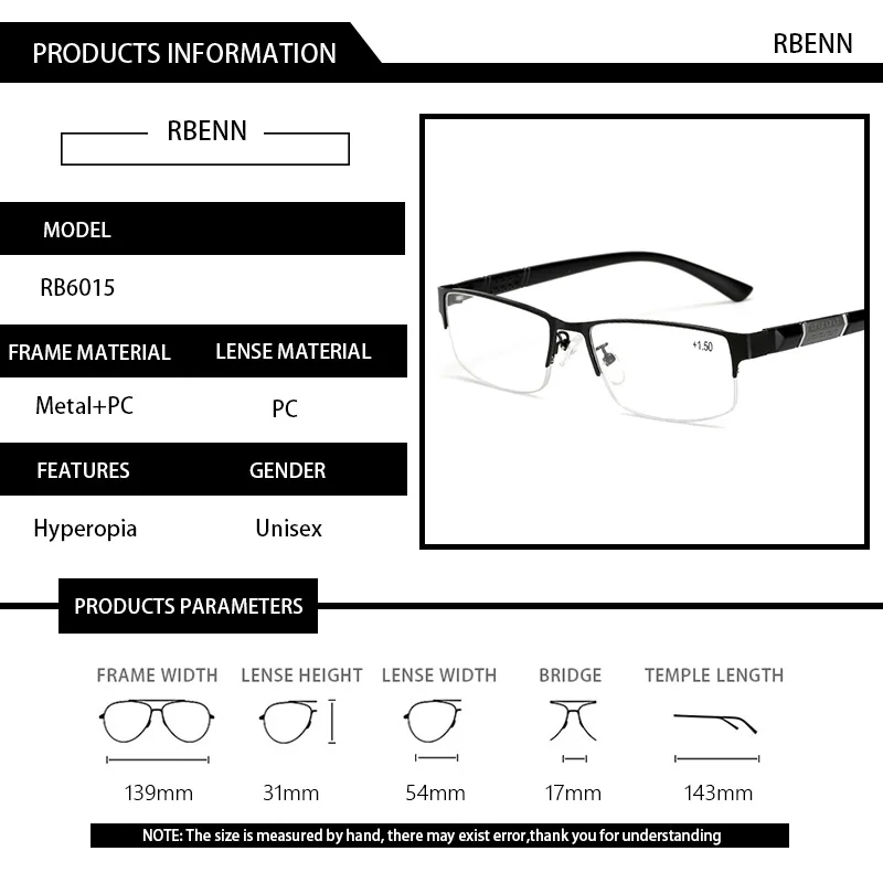 Мужские деловые очки для чтения RBENN, металлическая полуоправа, пр...