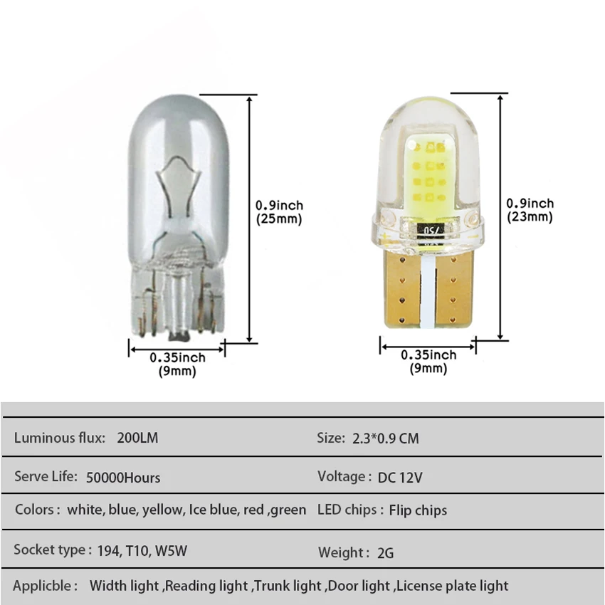 12 шт., автомобильные светодиодсветодиодный лампы W5W T10 COB 194