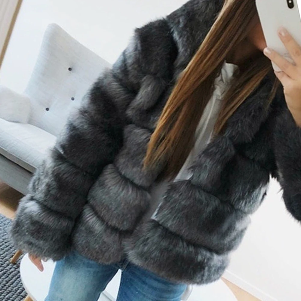 Женское утолщенное теплое пушистое пальто с капюшоном, куртка с длинным рукавом из искусственного меха, верхняя одежда