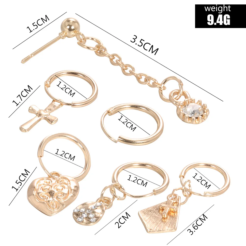 Женские винтажные серьги-гвоздики с золотым шариком и крестом в форме сердца, серьга геометрической формы комплектов, в стиле панк, ювелирные изделия 2020