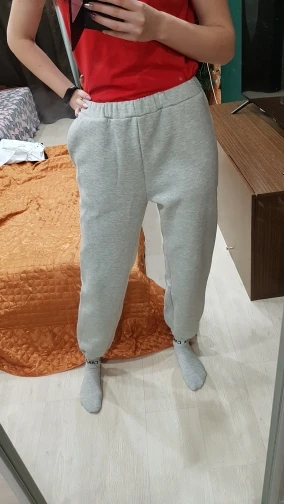 Штаны классные. Ногу обычно S. Заказала M, выглядят свободно. Рост 156, поэтому ноги полностью скрывают.