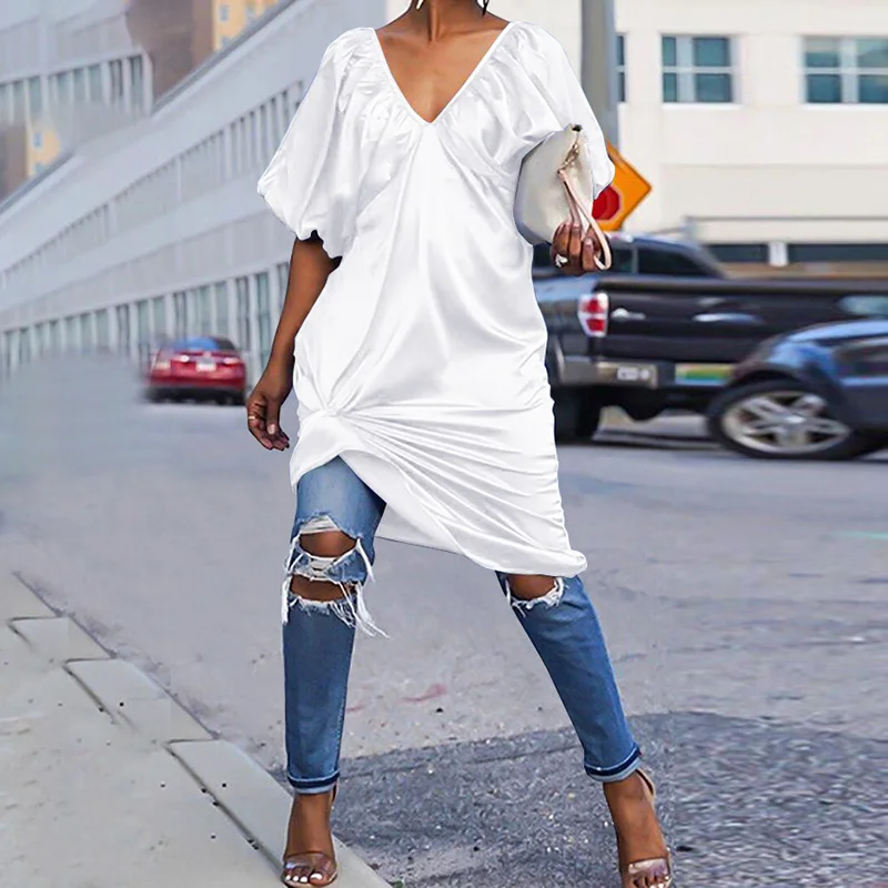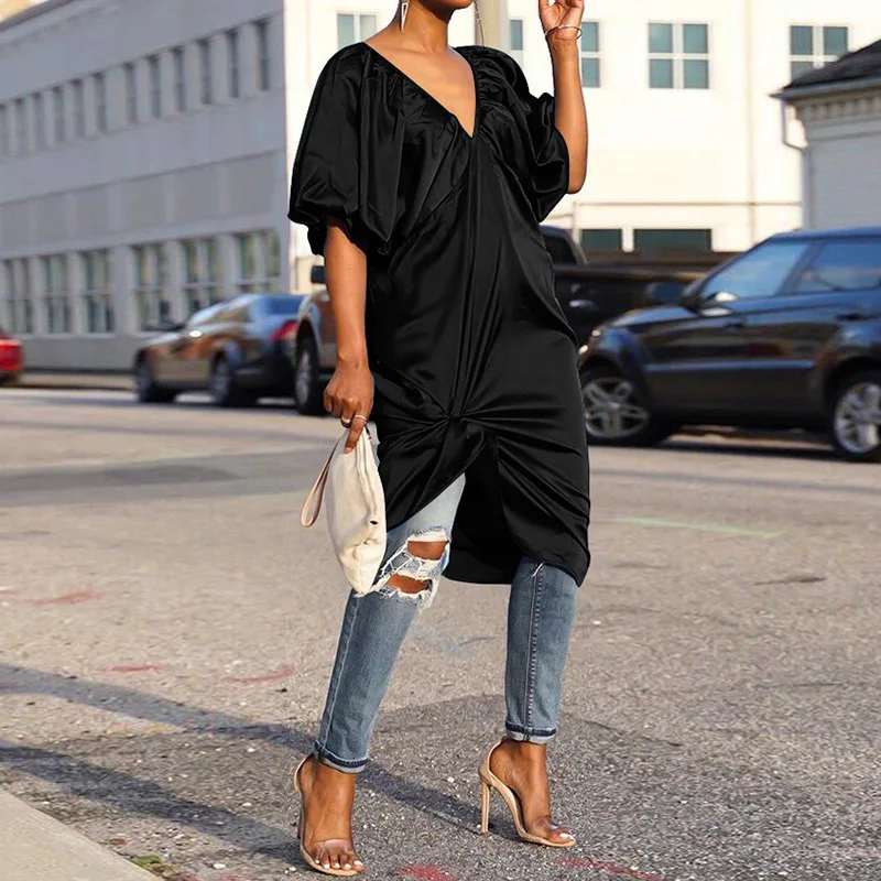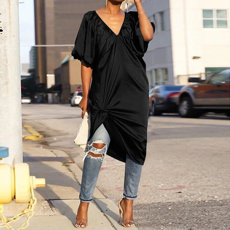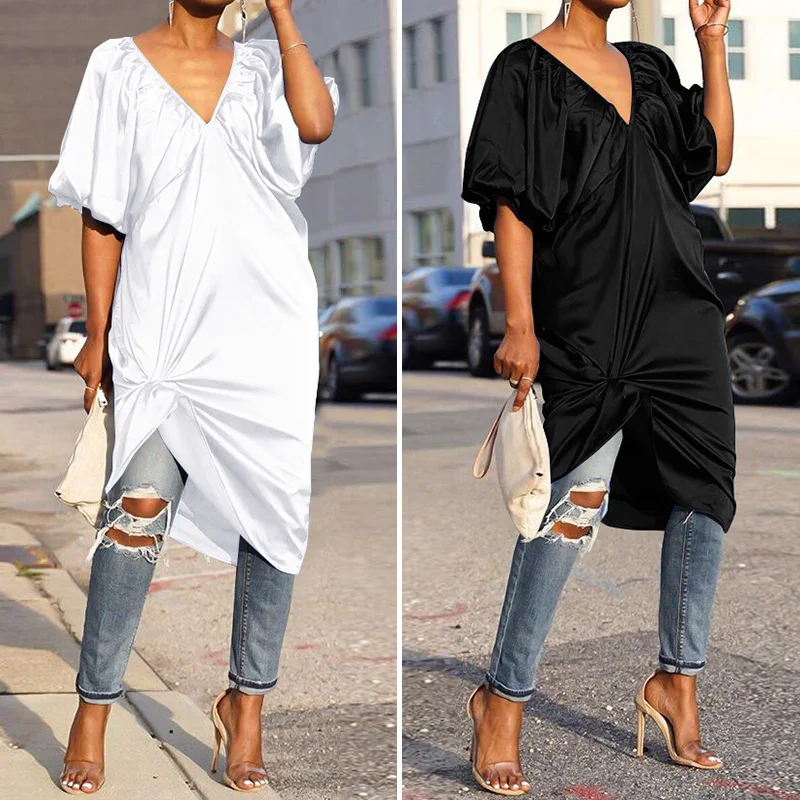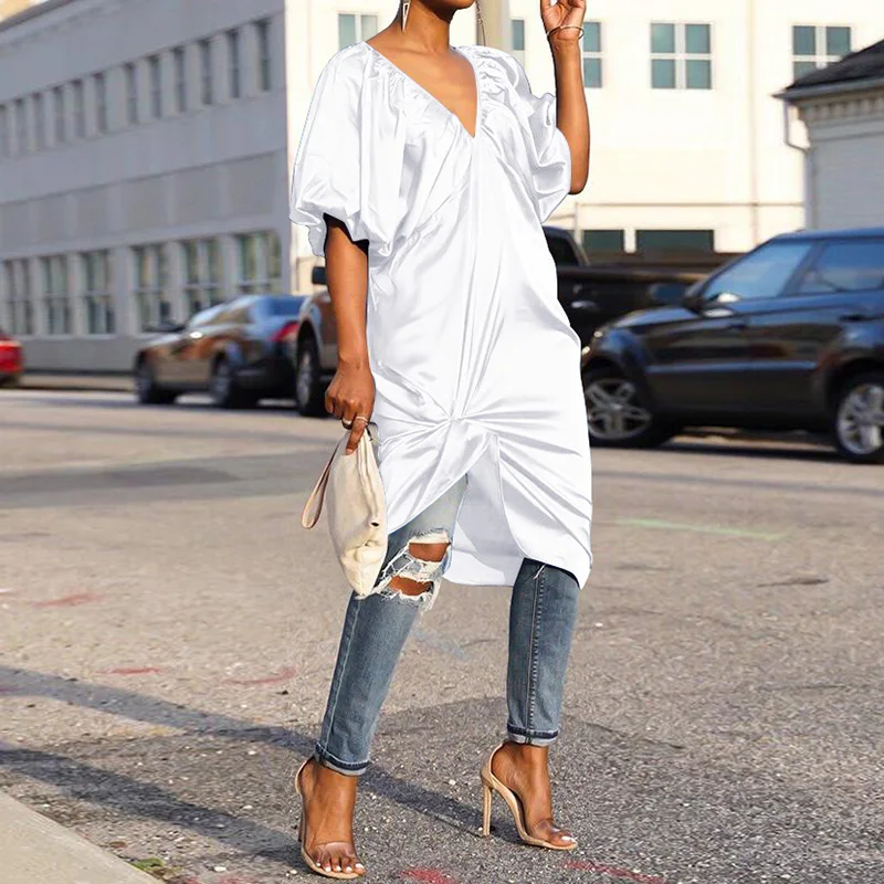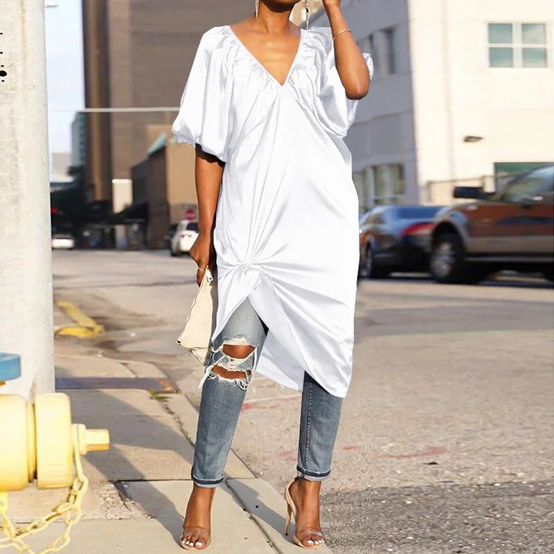 Длинное женское платье-макси S- Solid, повседневный мешковатый сара...
