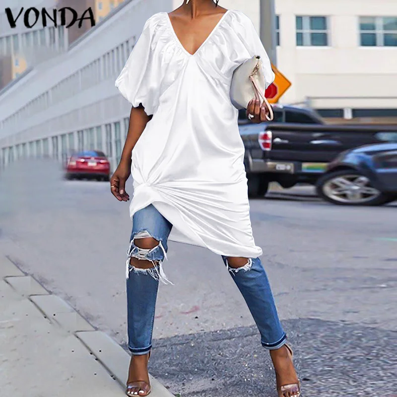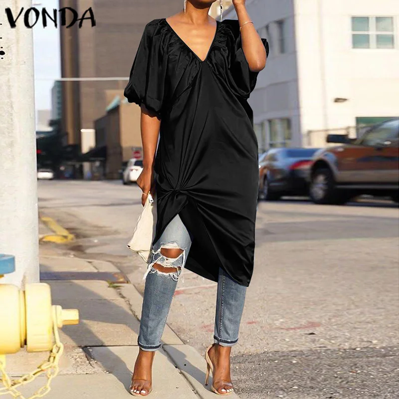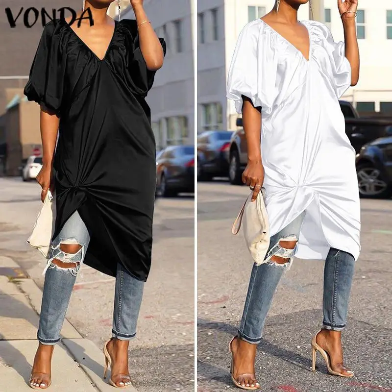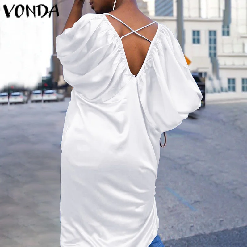 Женские вечерние топы VONDA, асимметричные рубашки в богемном стиле, Повседневная Свободная пикантная блузка с рукавом-фонариком, лето 2021