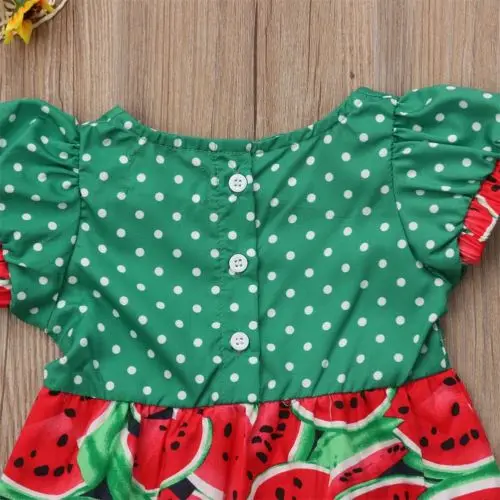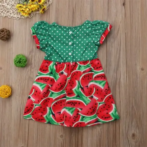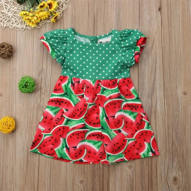 Детское платье для маленьких девочек, Повседневные Вечерние платья принцессы с арбузом, летняя одежда с короткими рукавами
