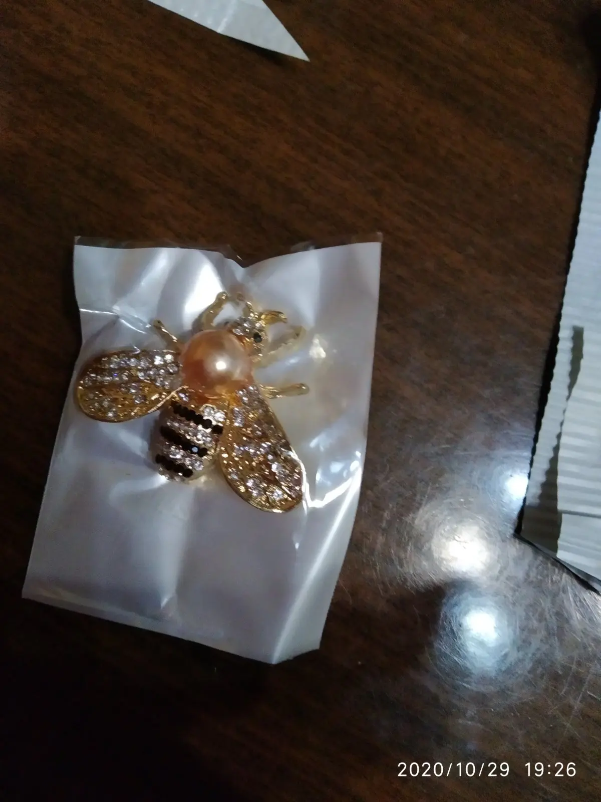 Хорошая брошь. Жене понравилась. Купил со скидкой за 0.90 usd. Товар был отправлен на следующий день. Трек-номер отслеживался. Положили в почтовый ящик. Слава Богу, сейчас уже живу в нормальной стране. В предыдущей стране, могли своровать из почтового ящика. Доставка около месяца, из них три недели лежало на таможне.