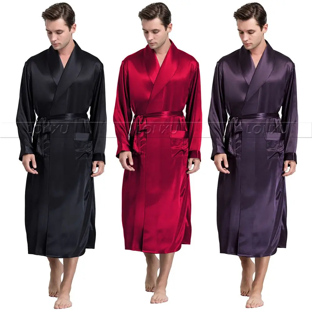 Мужские шелковые атласные халаты, банный халат, ночнушки, ночное бе...