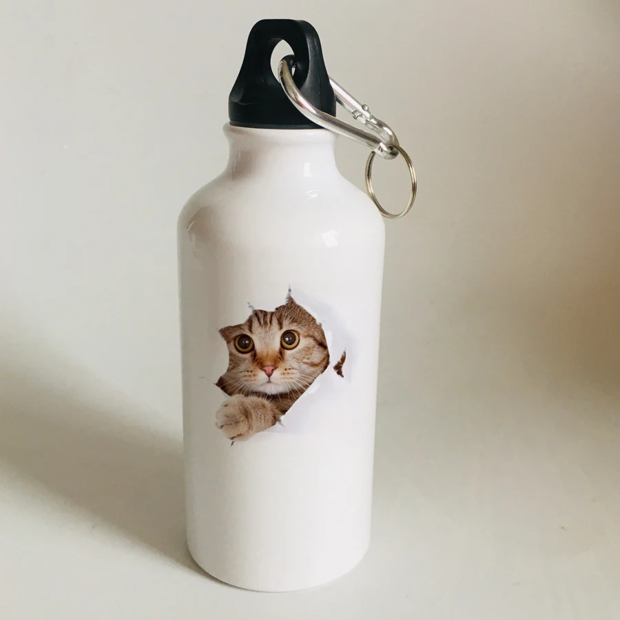 Алюминиевая Спортивная бутылка, портативная бутылка для воды с крючком для скалолазания, уличная бутылка для воды с забавным котом, подарок