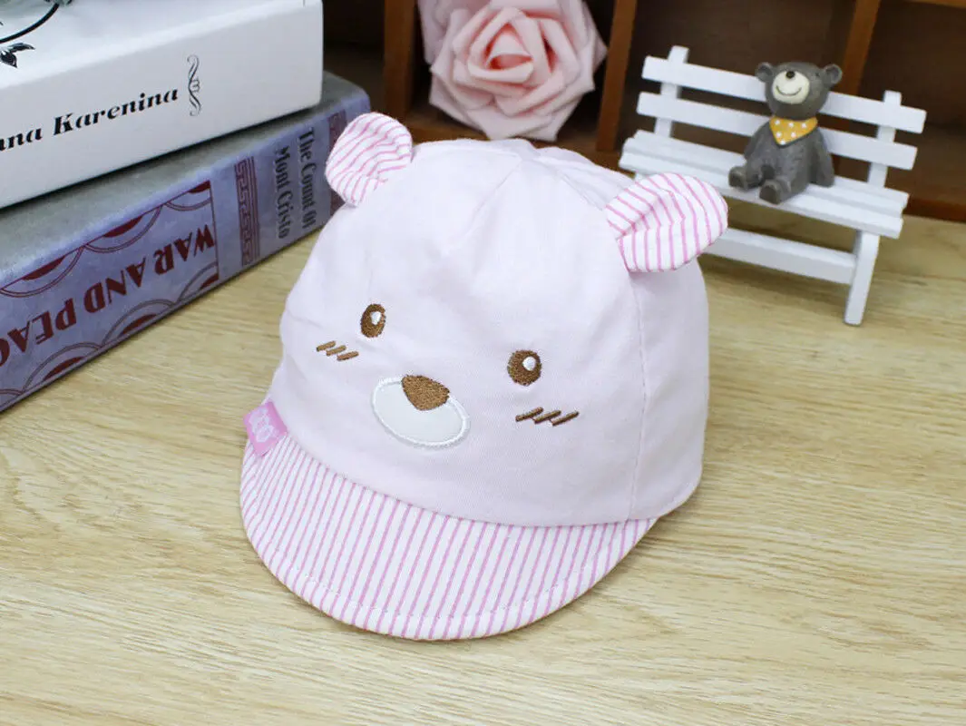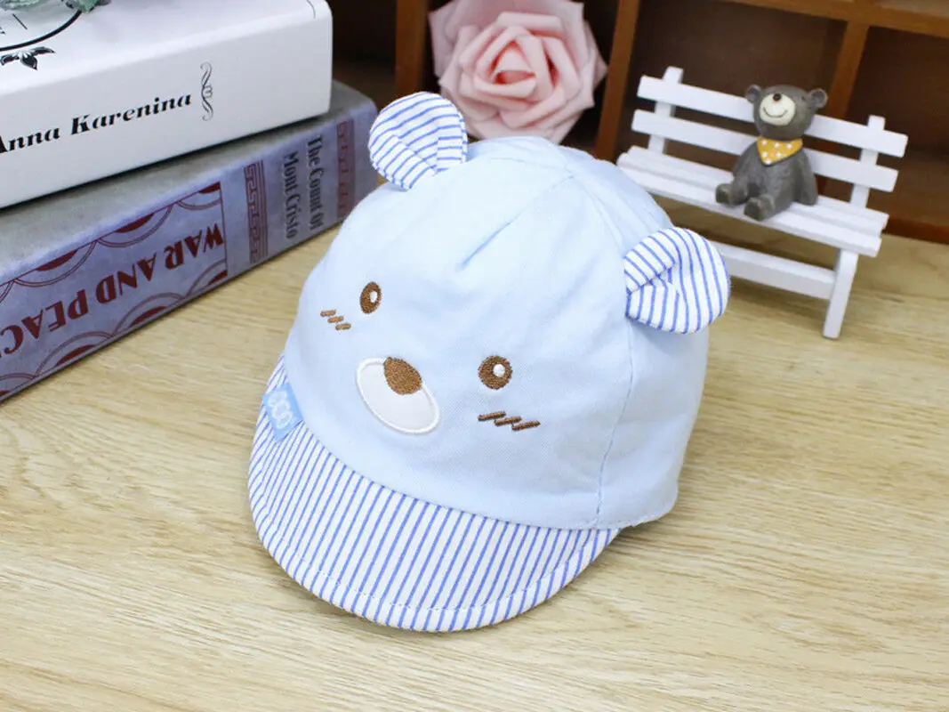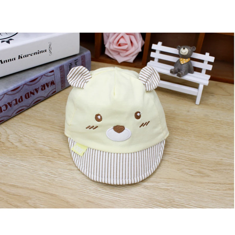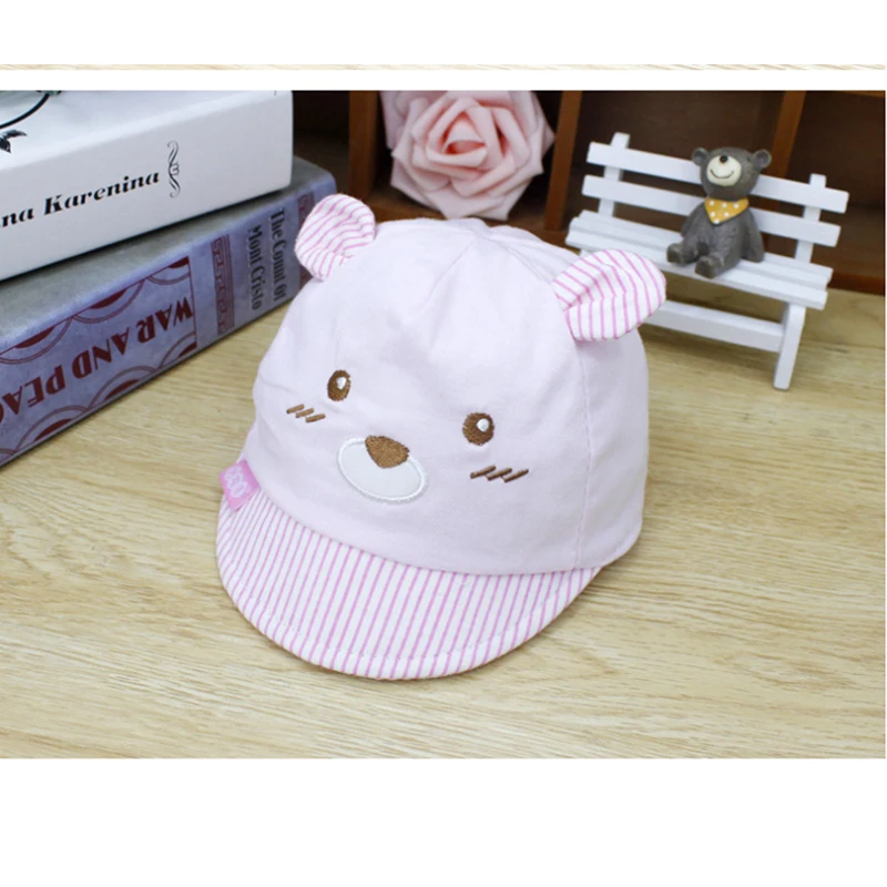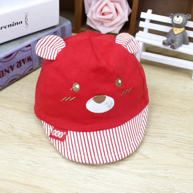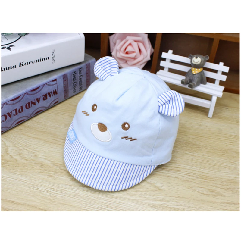 Бейсболки для новорожденных детей, 4 цвета, кепки для девочек, мальчиков, унисекс, с медведем, Полосатые Шляпы, с маленькими ушками, кепка, подарки