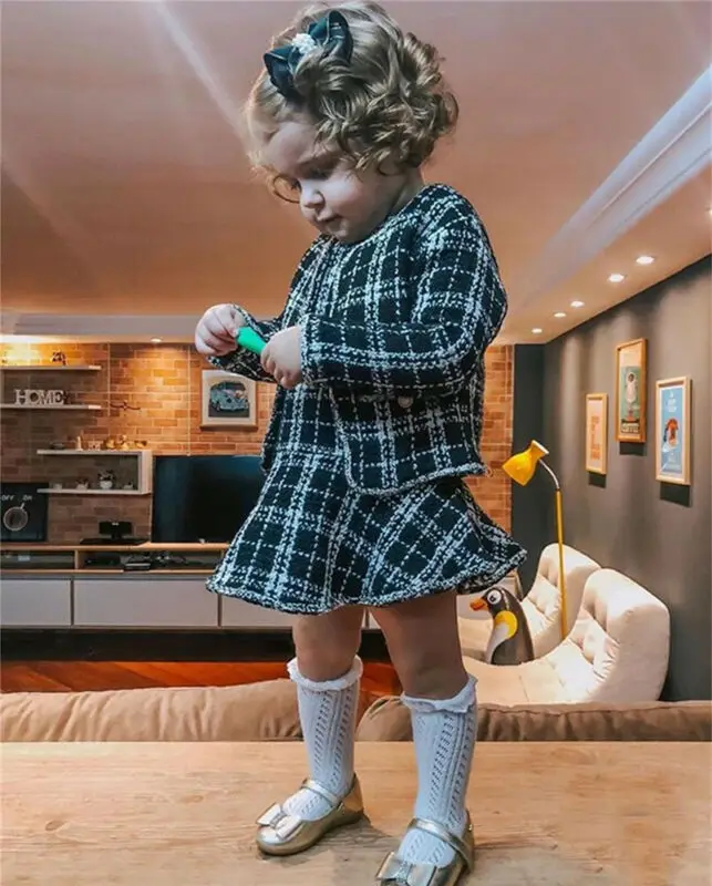 От 1 до 6 лет комплект клетчатой одежды для маленьких девочек, вяза...