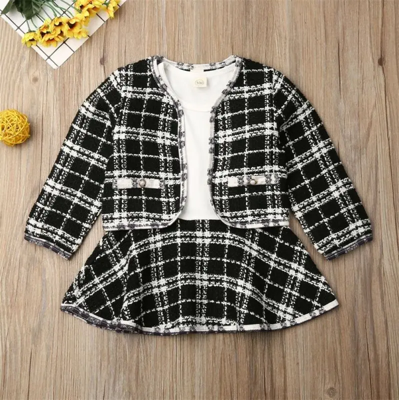 Новое Детское клетчатое пальто и платье-пачка для маленьких девочек...