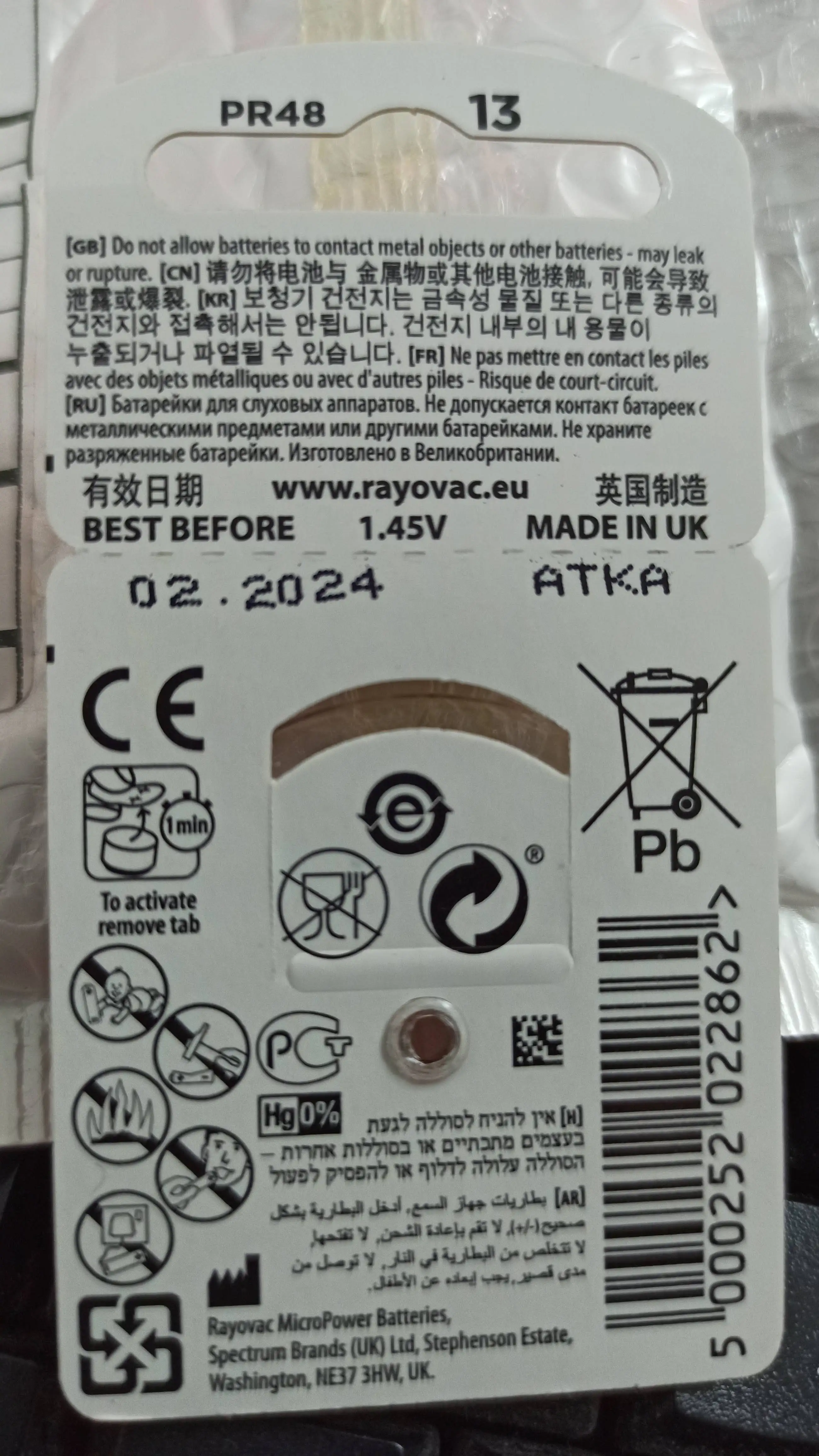приехал заказ в Киров нереально быстро из Гонконга! 28.09 заказал, 8.10 получил. Идеально. ещё не пробовал, но раз 1.45V, а не 1.5, как другие, то хватит, может, на пол дня меньше, чем 1.5V) Срок хороший, до 03.2024. норм, можно брать!