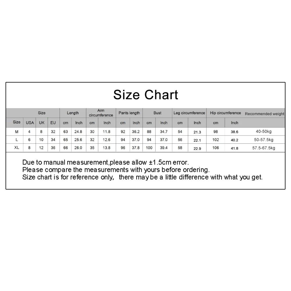 [Наш Размер M] Обхват груди: 88 см/34,7 "обхват ноги: 54 см/21,3", Длина: 63 см/24,8 "Длина брюк: 92 см/36,2" (прибл.)
