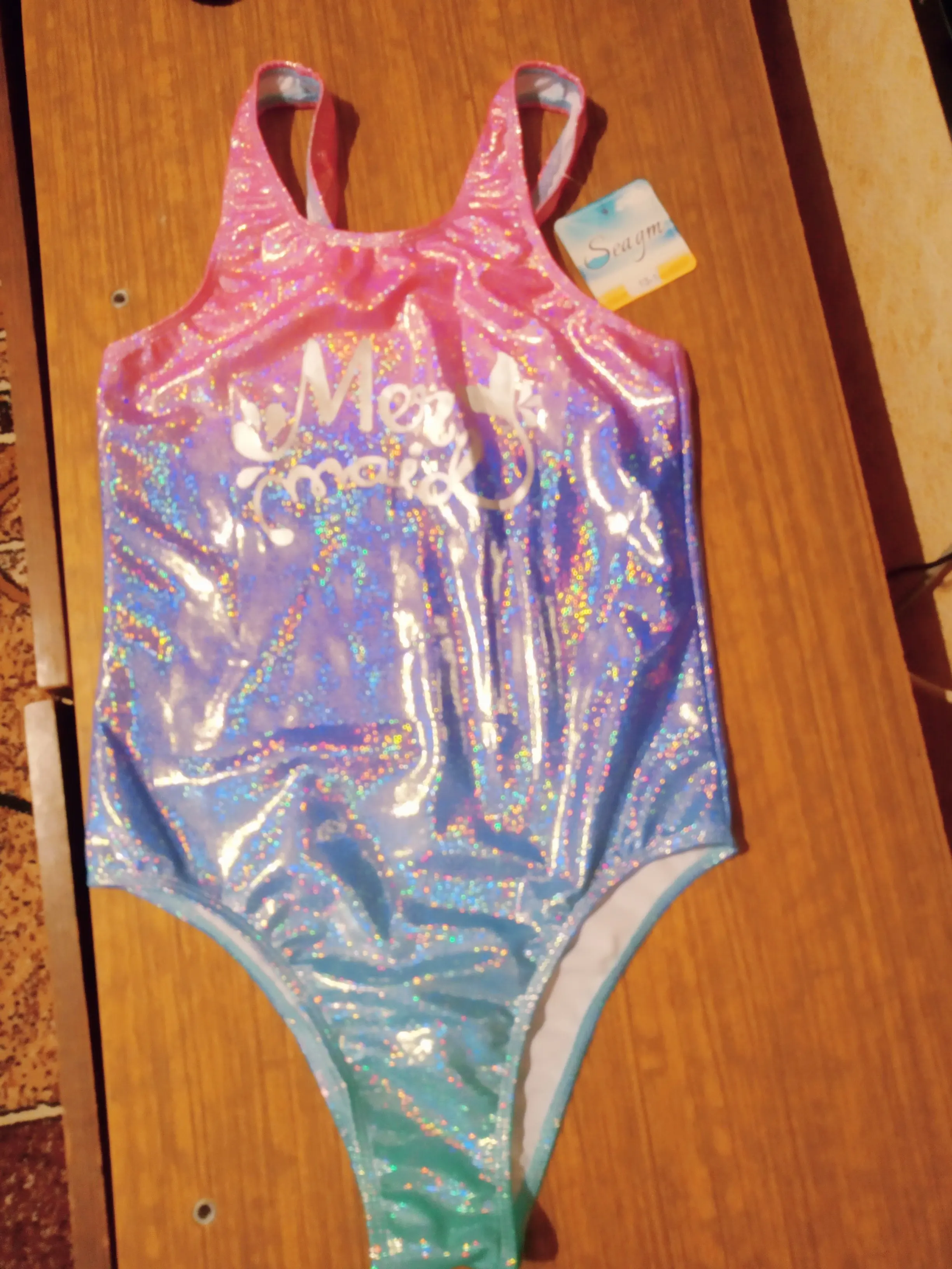 Изумительный купальник! Я и внучка просто в восторге. Качество отличное. Благодаря отзывам, на высокую худенькую девочку 10 лет заказала на 14. Купальник сидит свободно, не в обтяжку, и при намокании в бассейне немного растягивается. Но по длине меньше было бы мало. Ребёнку в нем комфортно. Надеюсь хватит до осени, когда будет мал, обязательно закажу этому продавцу. Отправка быстро, пошив безупречный, материал прекрасный, он весь в голографических блёстках, переливается очень красиво. Оригинальная расцветка. Рекомендую однозначно. Одна из лучших моих покупок на Али.