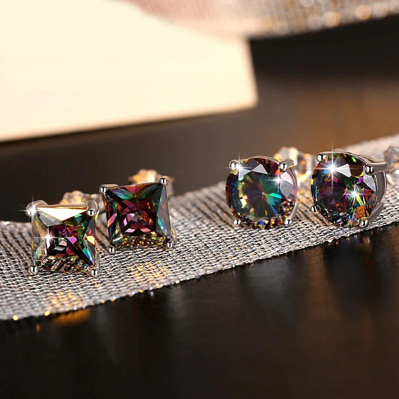Серьги-гвоздики мужскиеженские из серебра 925 пробы с квадратным круглым цветным топазом