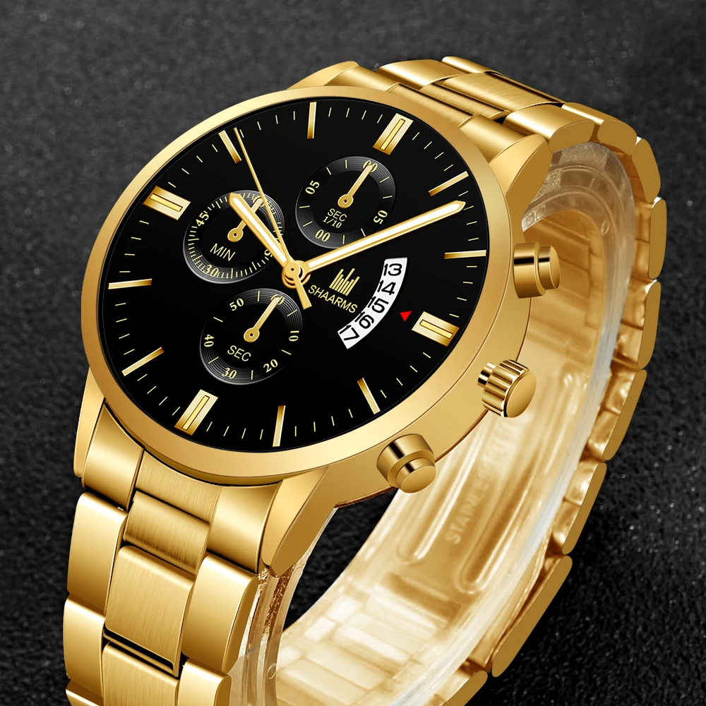 2020 мужские роскошные деловые военные кварцевые часы золотой брасл...