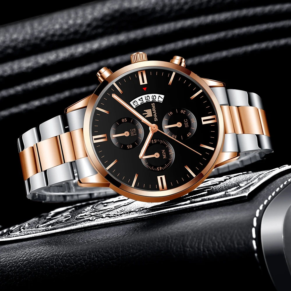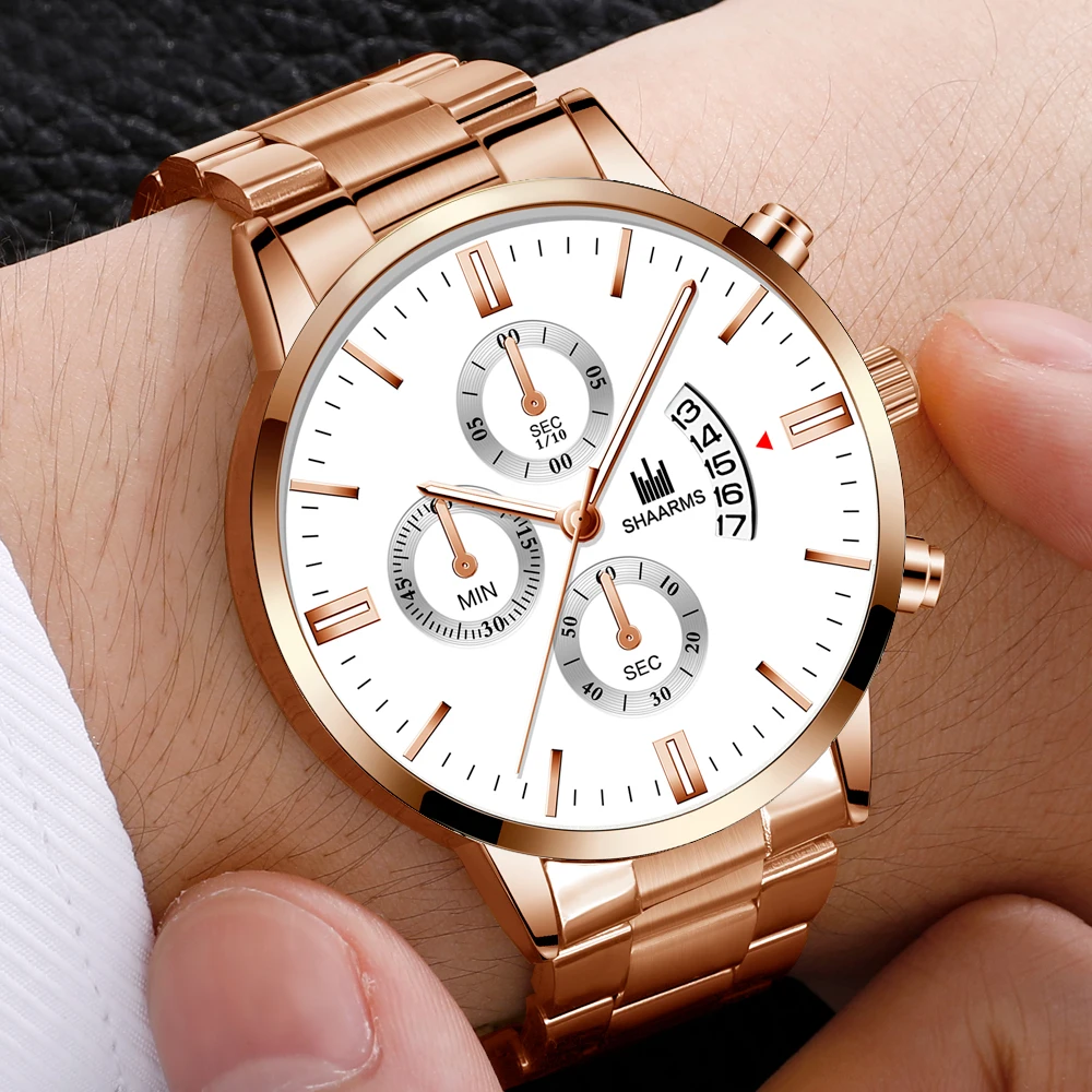 2019 Горячие Роскошные деловые мужские наручные часы с ремешком из нержавеющей стали, кварцевые часы с датой, мужские Модные Военные Спортивные часы, розовые часы