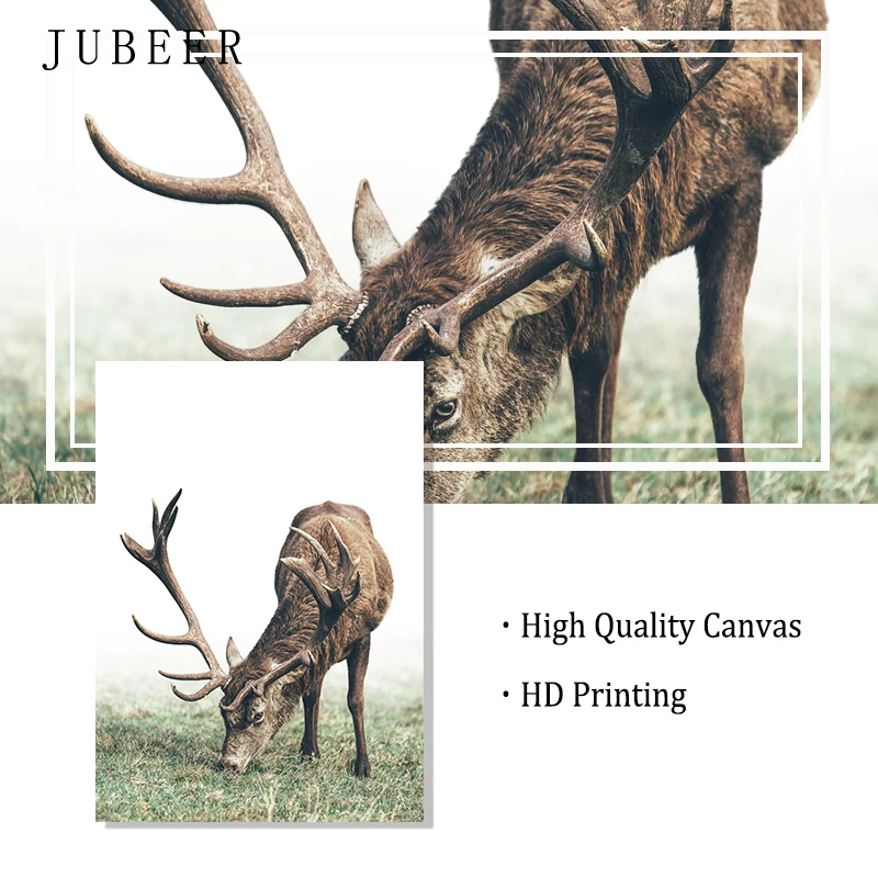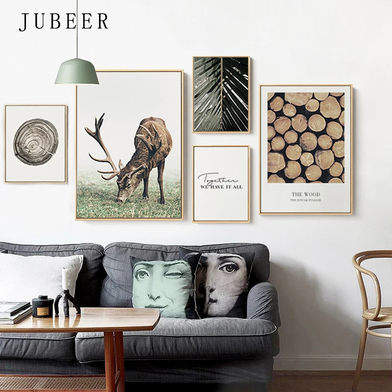 Плакат в скандинавском стиле с изображением оленя, настенное художественное украшение для гостиной, деревянное кольцо, лист, кузнечный холст, принты для домашнего декора