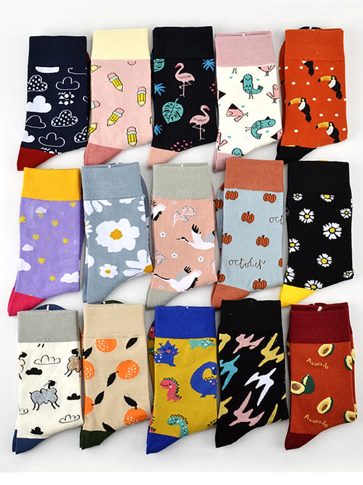 Носки мужские, женские, хлопковые, короткие, с авокадо, фламинго, забавные