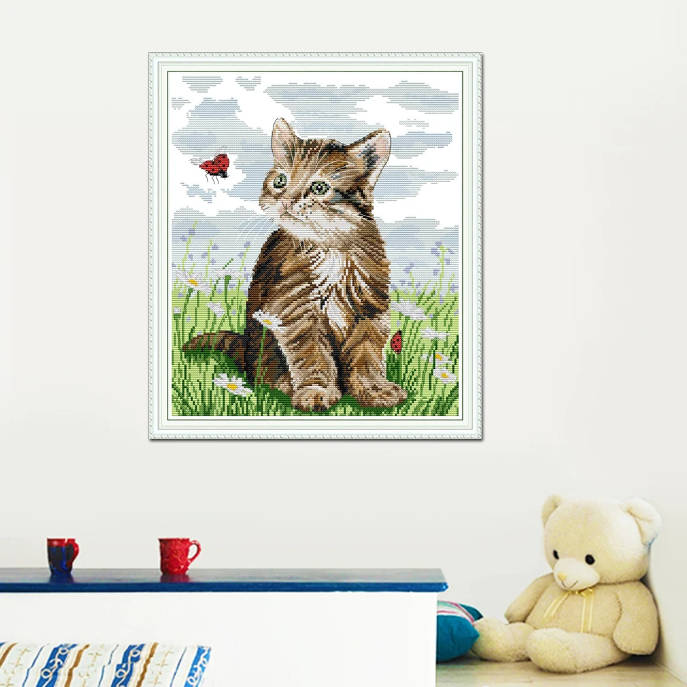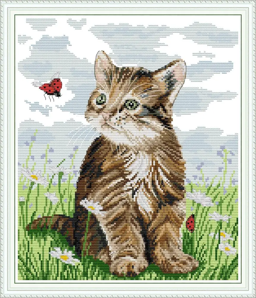 Джой воскресенье кошка и Божья коровка вышивка крестиком DA325 14CT 11CT Счетный и штампованный домашний декор кошка и Божья коровка наборы для вышивки крестиком