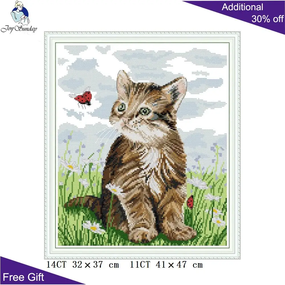 Joy Sunday Вышивка крестом с изображением кота и божьей коровки DA325 14CT 11CT Счетный и штампованный домашний декор наборы для вышивки крестом с изображением кота и божьей коровки