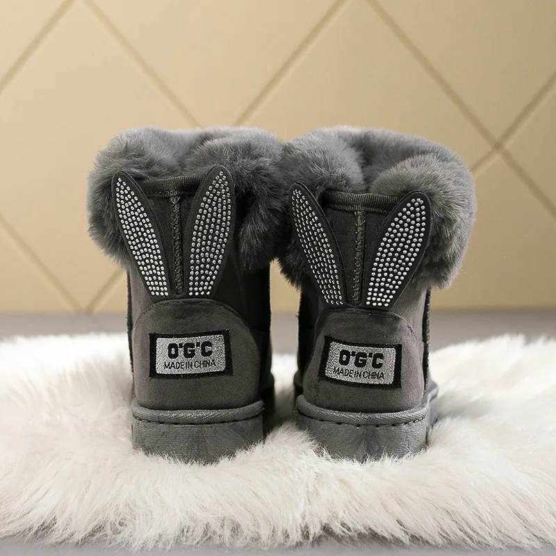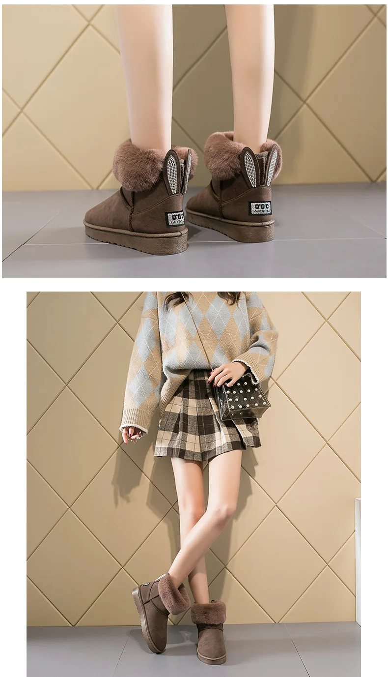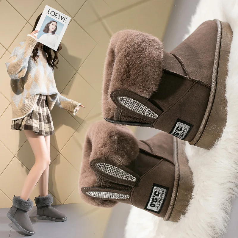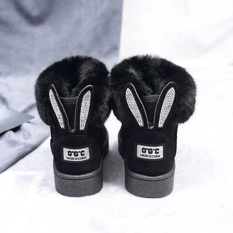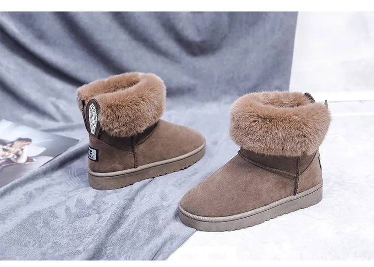 Женская зимняя обувь на снежную погоду на открытом воздухе мехом; Обувь сохраняющая тепло; Большие размеры Женский, мягкое покрытие (флок), без шнуровки, на шерстяные ботинки Твердые Стразы повседневные ботинки для женщин