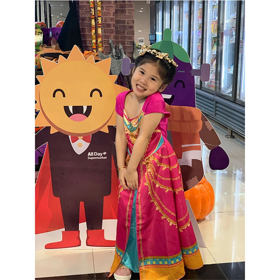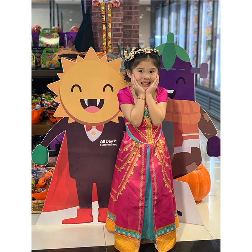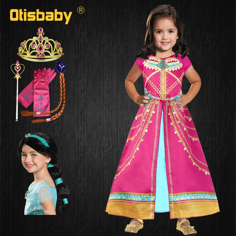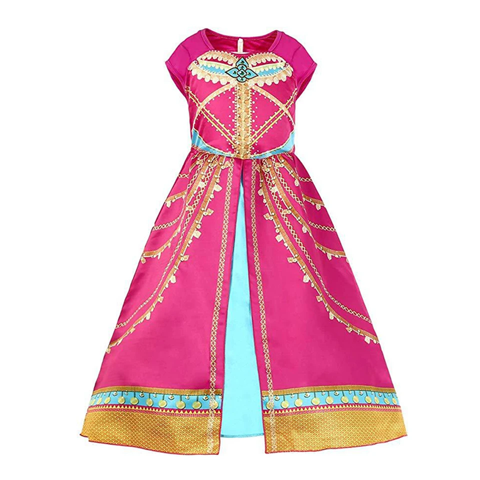 Жасмин платье принцессы для девочек Аладдин Рождество великолепные розовые платья Дети Жасмин Костюм для коронации детская одежда в арабском стиле