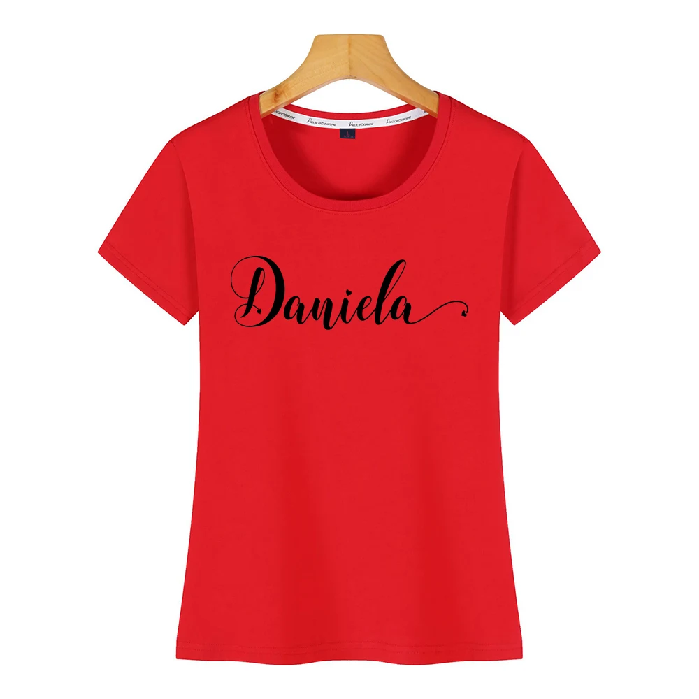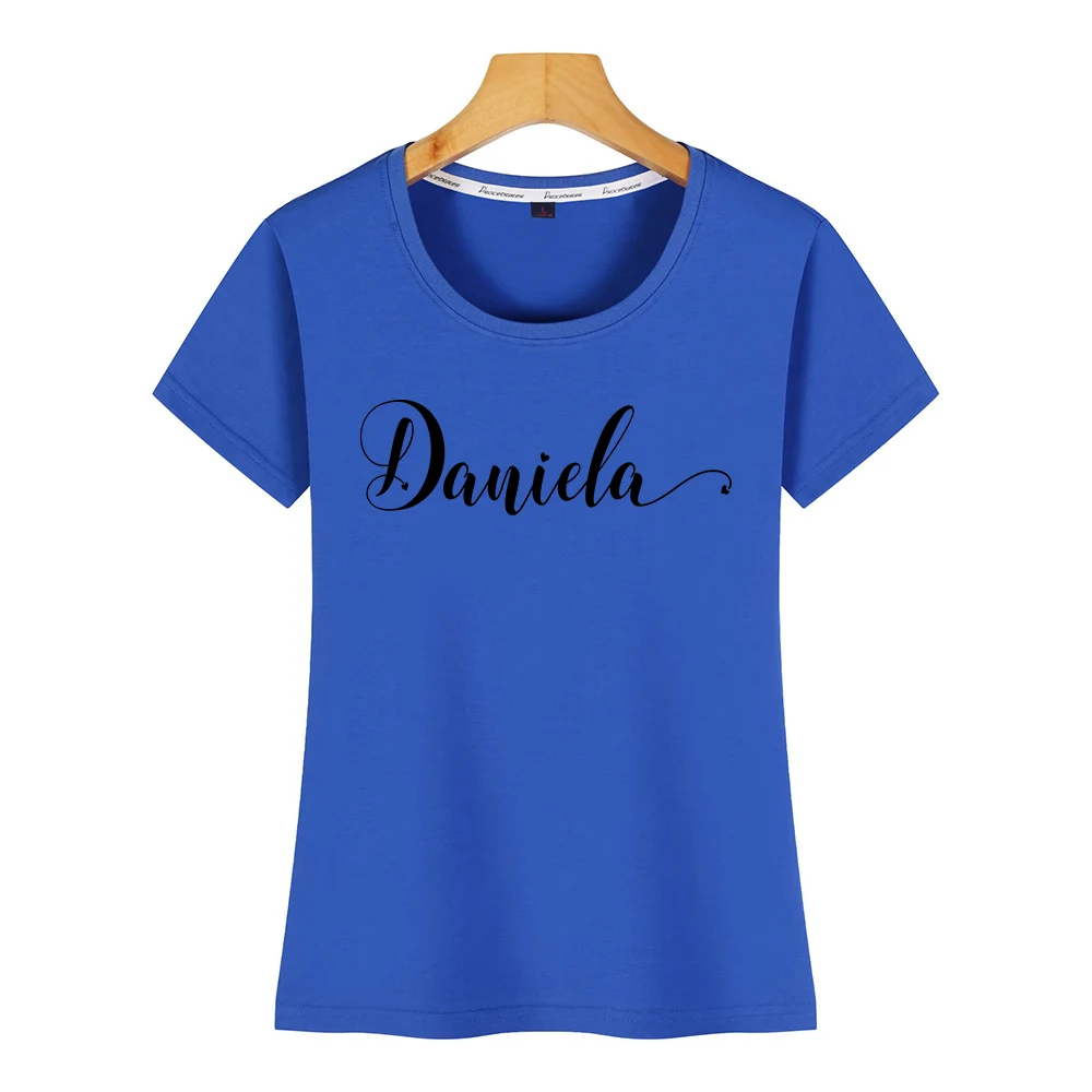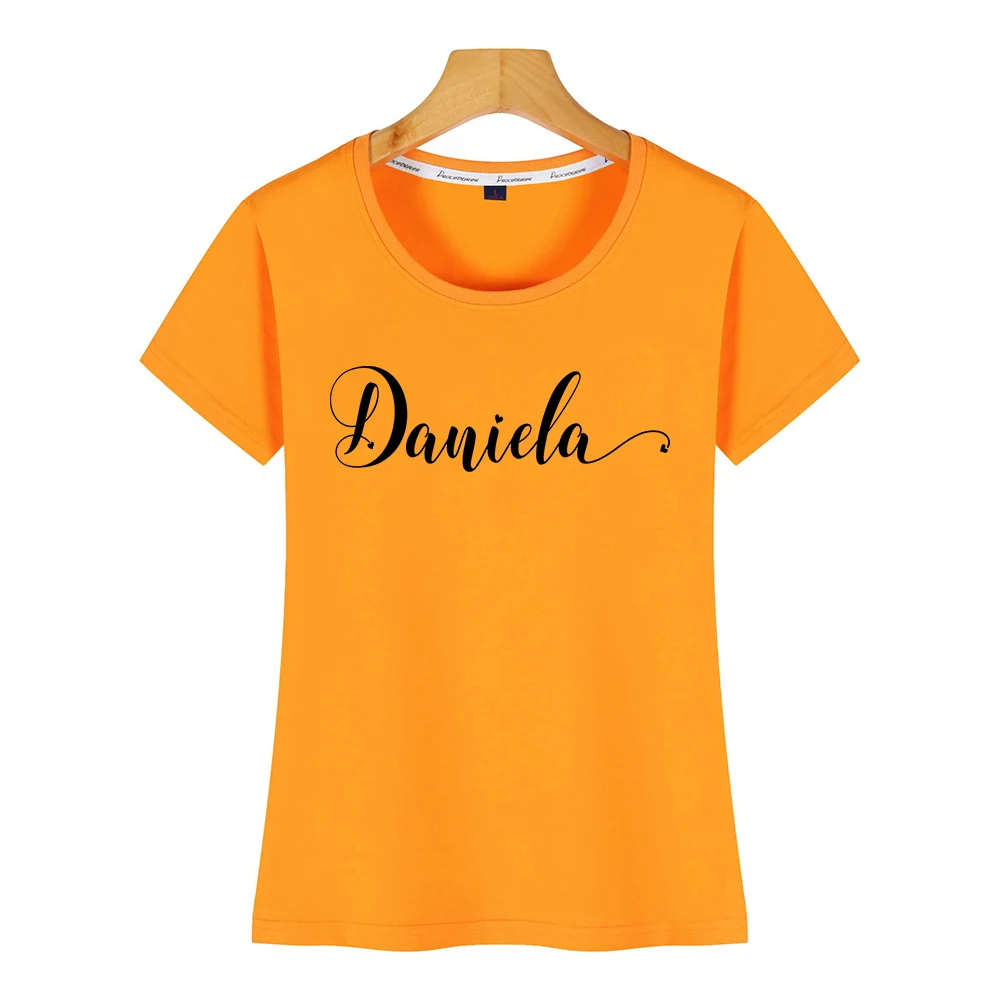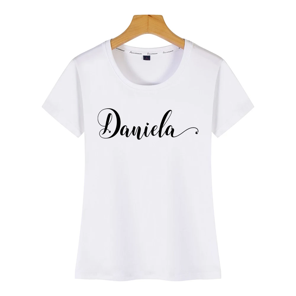 Топы Футболка Для женщин daniela подходит надписями Хлопковая женская футболка